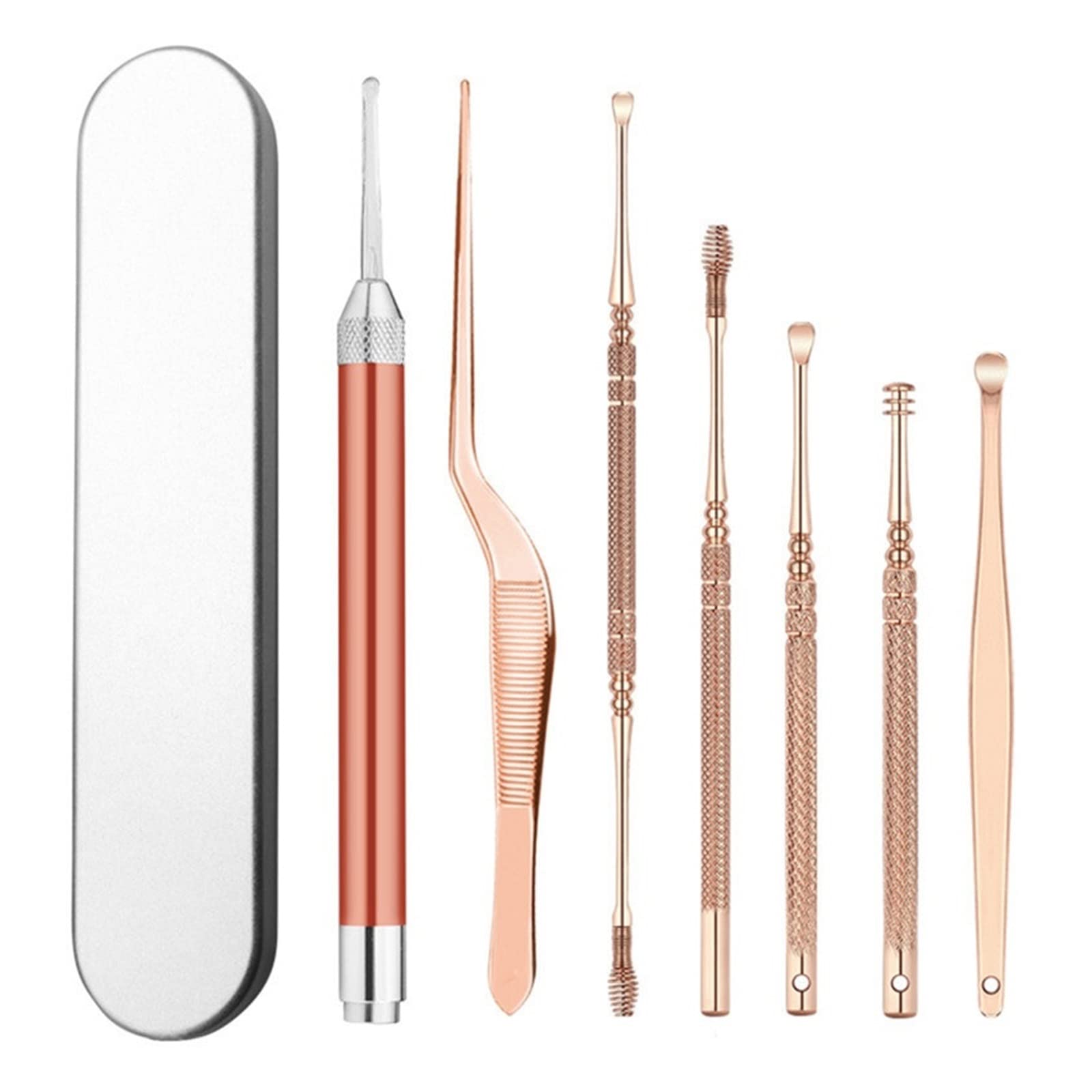 MACIMO LED Ear Wax Pickers Stainless Steel Earpick Wax Remover Curette Ear Pick Cleaner Ear Cleaner Spoon Care Ear Clean Tool Gold