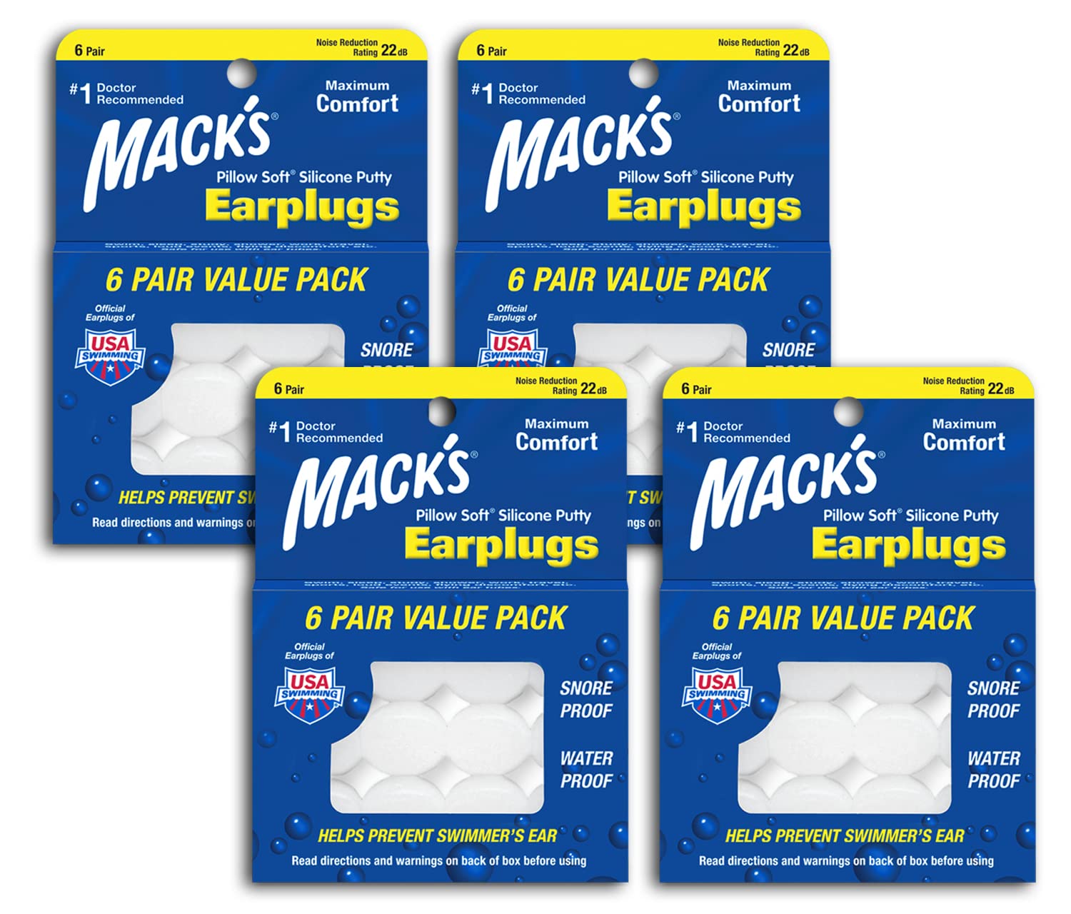 Mack's Pillow Soft Silicone Earplugs - 6 Pair (Pack of 4), Value Pack The Original Moldable Silicone Putty Ear Plugs for Sleeping, Snoring, Swimming, Travel, Concerts and Studying