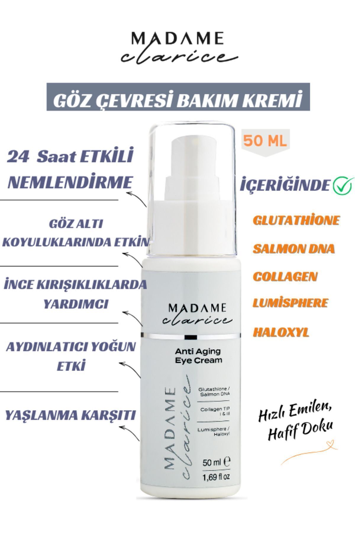 Madame Clarice Eye Contour Care Cream 50ml Anti-Wrinkle Brightening Anti-Aging Eye Cream Salmon Dna