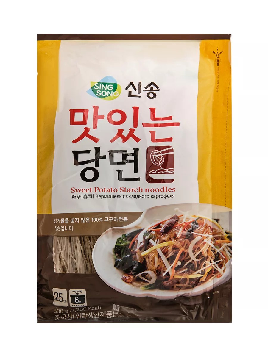 Комплектациякорея; Лапша из крахмала сладкого картофеля Синг Сонг (фунчоза) 500г