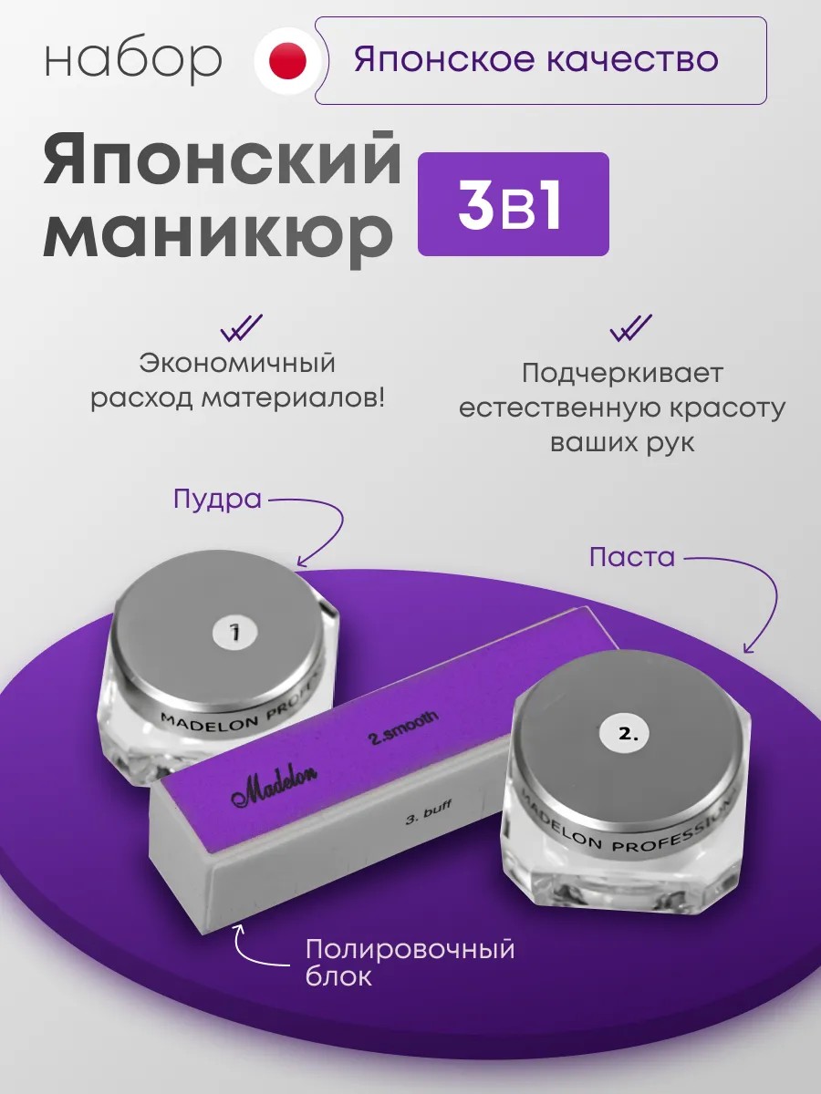 Превратите домашний уход в профессиональный спа-ритуал с японским маникюрным набором Madelon! Этот комплексный набор вернет вашим ногтям невероятную силу, здоровье и ослепительный зеркальный блеск без лака, который держится до 2-х недель.