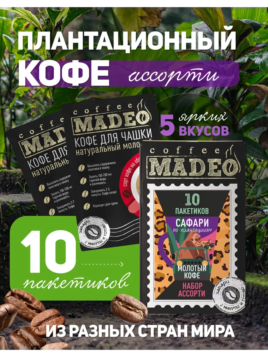 MADEO Набор Сафари, молотый кофе плантация, 10 пакетиков
