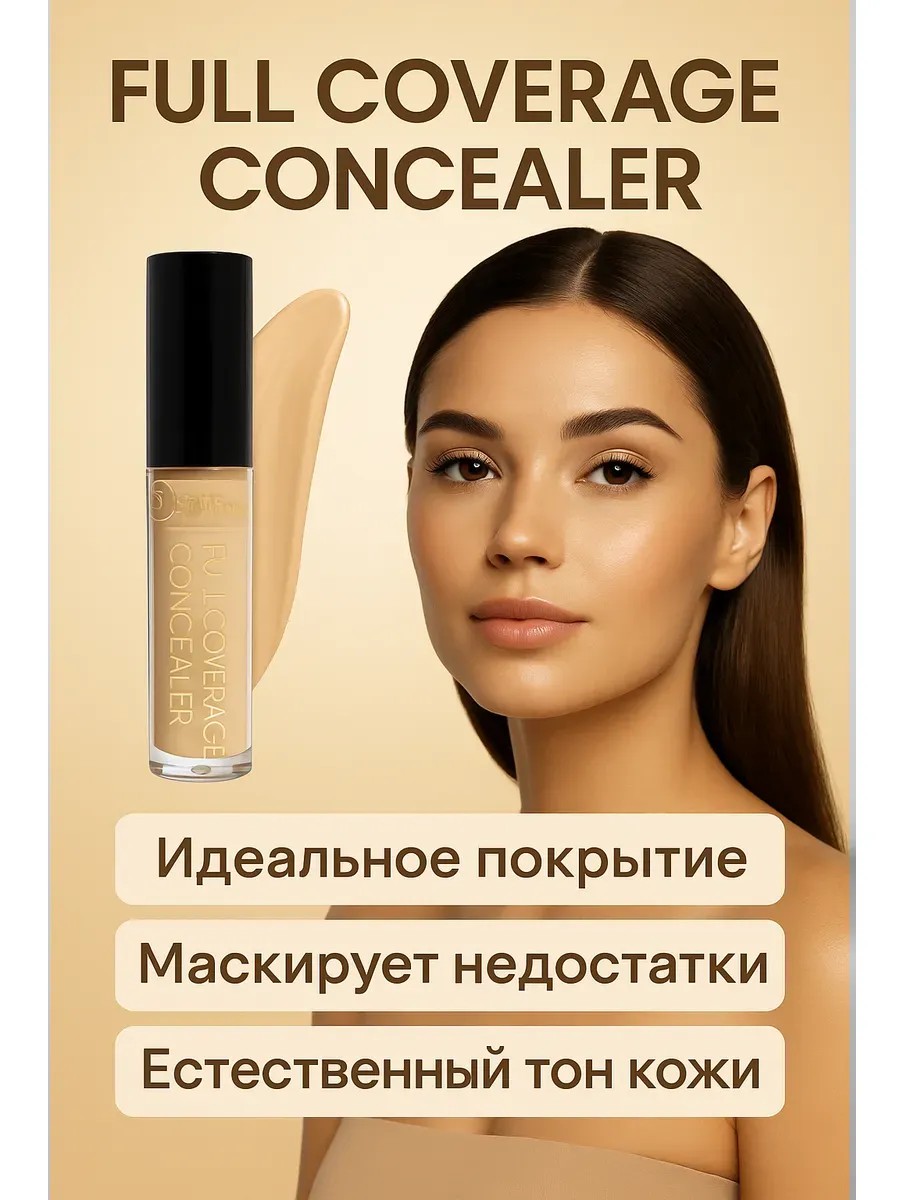 If you're looking for a long-lasting concealer for your face and eyes that covers dark circles, redness, and age spots, then FULL COVERAGE Concealer will be your reliable assistant.