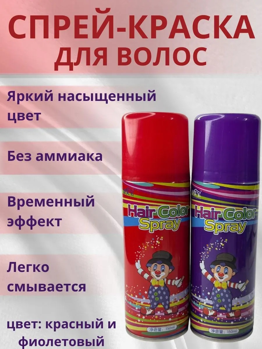 Временная спрей-краска для волос (красный и фиолетовый цвета)