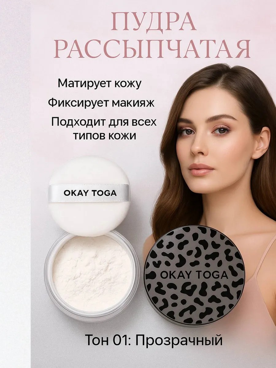 Откройте для себя идеальную пудру для лица OKAY TOGA. Наша рассыпчатая пудра 1 тон создаёт безупречный финиш и естественный вид, благодаря чему ваша кожа выглядит свежей и ухоженной. В отличие от обычных косметических продуктов, наша натуральная пудра минеральная позволяет коже дышать, минимизируя риск появления жирного блеска и несовершенств.