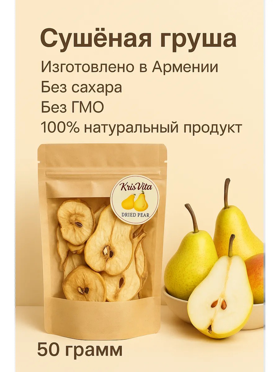 Натуральные сушёная груш чипсы KrisVita — полезный перекус для всей семьи