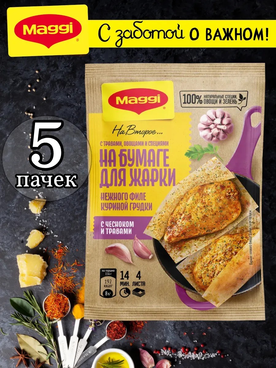 Листы для жарки MAGGI На второе для нежного филе куриной грудки с чесноком и травами - это инновационный продукт, который позволяет вам легко и быстро приготовить сочное куриное филе. Забудьте о сложных рецептах и долгих часах, проведенных за плитой!