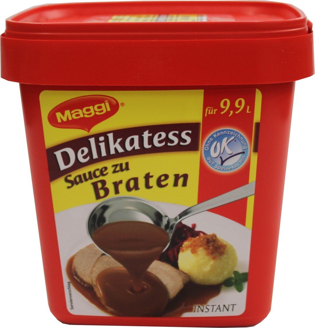 900 gr. Maggi delicatess sauce to roast ok. Ingredients: palm fat, wheat flour, starch, modified starch, yeast extract, iodine salt, tomato paste (triple concentrated), vegetable protein, biologically open -minded (wheat protein, salt), caramel (sugar, glucose syrup), spices (paprika, onions, pepper, coriander, garlic, Piment), sugar, aroma, emulgator mono and diglycerides of food acids.Traces: eggs, soy, milk, celery, mustard. Made in Germany Manufacturer importer: Maggi GmbH, Lyoner Straße 23, D-60528 Frankfurt Main Average nutritional values per 100 gr.: Seat value KJ: 1455 - KCAL: 347 - Fat in G: 12 - of which saturated fatty acids in G: 7.1 - carbohydrates in G: 48 - of which sugar in G: 8 - fiber in G: -Protein in G: 8.3 - salt in G: 17.9 Ingredients ingredients Ingredients: palm fat, wheat flour, starch, modified starch, yeast extract, iodine salt, tomato paste (triple concentrated), vegetable protein, biologically open -minded (wheat protein, salt), caramel (sugar, glucose syrup), spices (paprika, onions, pepper, coriander, garlic, Piment), sugar, aroma, emulgator mono and diglycerides of food acids.Traces: eggs, soy, milk, celery, mustard. LEGAL NOTICE Attention: NEW 900 gr. ! And in the white box !Was changed by the manufacturer! MoreAttention: new design in the white box and 900 gr.!Maggi delicatess sauce to roast ok 900g.900 gr. Maggi Delikatess Sauce zu Braten OK. ZUTATEN: Palmfett, WEIZENMEHL, Stärke, modifizierte Stärke, Hefeextrakt, Jodsalz, Tomatenmark (dreifach konzentriert), pflanzliches EIWEISS, biologisch aufgeschlossen (WEIZENEIWEISS, Salz), Karamell (Zucker, Glukosesirup), Gewürze (Paprika, Zwiebeln, Pfeffer, Koriander, Knoblauch, Piment), Zucker, Aroma, Emulgator Mono- und Diglyceride von Speisefettsäuren. SPUREN: EIER, SOJA, MILCH, SELLERIE, SENF. Hergestellt in: Deutschland Hersteller Importeur: MAGGI GmbH, Lyoner Straße 23, D-60528 Frankfurt Main Durchschnittliche Nährwerte je 100 gr.: Brennwert kj: 1455 - kcal: 347 - Fett in g: 12 - davon gesättigte Fettsäuren in g: 7,1 - Kohlenhydrate in g: 48 - davon Zucker in g: 8 - Ballaststoffe in g: - Eiweiß in g: 8,3 - Salz in g: 17,9 INHALTSSTOFFE ZUTATEN ZUTATEN: Palmfett, WEIZENMEHL, Stärke, modifizierte Stärke, Hefeextrakt, Jodsalz, Tomatenmark (dreifach konzentriert), pflanzliches EIWEISS, biologisch aufgeschlossen (WEIZENEIWEISS, Salz), Karamell (Zucker, Glukosesirup), Gewürze (Paprika, Zwiebeln, Pfeffer, Koriander, Knoblauch, Piment), Zucker, Aroma, Emulgator Mono- und Diglyceride von Speisefettsäuren. SPUREN: EIER, SOJA, MILCH, SELLERIE, SENF. RECHTLICHE HINWEISE ACHTUNG: NEU 900 gr.!Und in der weißen BOX! Wurde vom Hersteller geändert! MehrACHTUNG: NEUES DESIGN in der weißen BOX und 900 gr.!. Maggi Delikatess Sauce zu Braten OK 900g.Maggi Delikatess Sauce zu Braten OK 950g