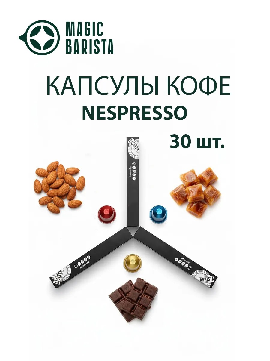 Набор кофе в капсулах от Magic barista предлагает вам уникальный вкусовой опыт с использованием арабики и робусты, которая добавляется для баланса вкуса и крепости. В наборе 30 капсул различных вкусов: шоколад, карамель и миндаль, что позволяет вам наслаждаться разнообразием кофейных ароматов. Интенсивность вкуса средняя, что делает его идеальным для каждого дня. Все капсулы соответствуют стандарту Nespresso Original, что гарантирует их совместимость с вашей кофейной машиной.