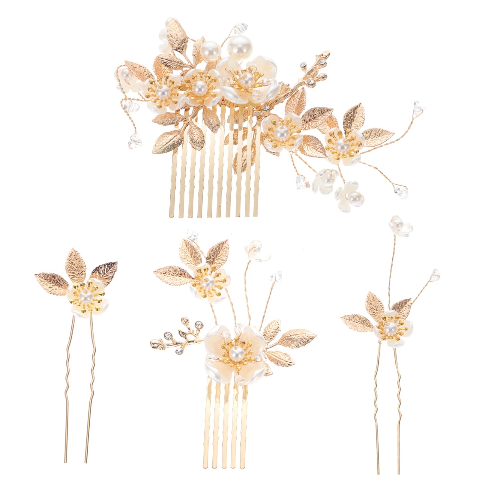 Package Include 2 x hair combs 2 x hairpins Features - Material: ABS, rhinestone, zinc alloy, copper wire Gold Hair Piece - Color: Golden Hair Comb Clip - Size: 13.50X8.00X1.50cm/5.31X3.14X0 Rhinestone Wedding Hair Comb. - They would be a great headdress for bride or bridesmaid for any special occasion Wedding Hair Piece. - These beautiful headdress designed with flower decor, delicate and elegant Flower Hair Comb. - The hair decor is in reasonable size for women and and will not hurt your hair Wedding Headdress. - The hair comb and hairpin will decorate you elegant and charming, making you more attractive Rhinestone Hair Side Comb. - Good materials and fine craftsmanship ensure its durability and practicality Wedding Hair Accessories. Goods Description rhinestone barrettes It can serve as pretty ornaments for you, delicate and matching well with various wedding hairstyles and clothes.wedding hair clips This wedding hair accessory is made of the durable material.bridesmaid hair clip You will stand out in the party with this headwear! for wedding, photo shoots, engagement, birthdays
