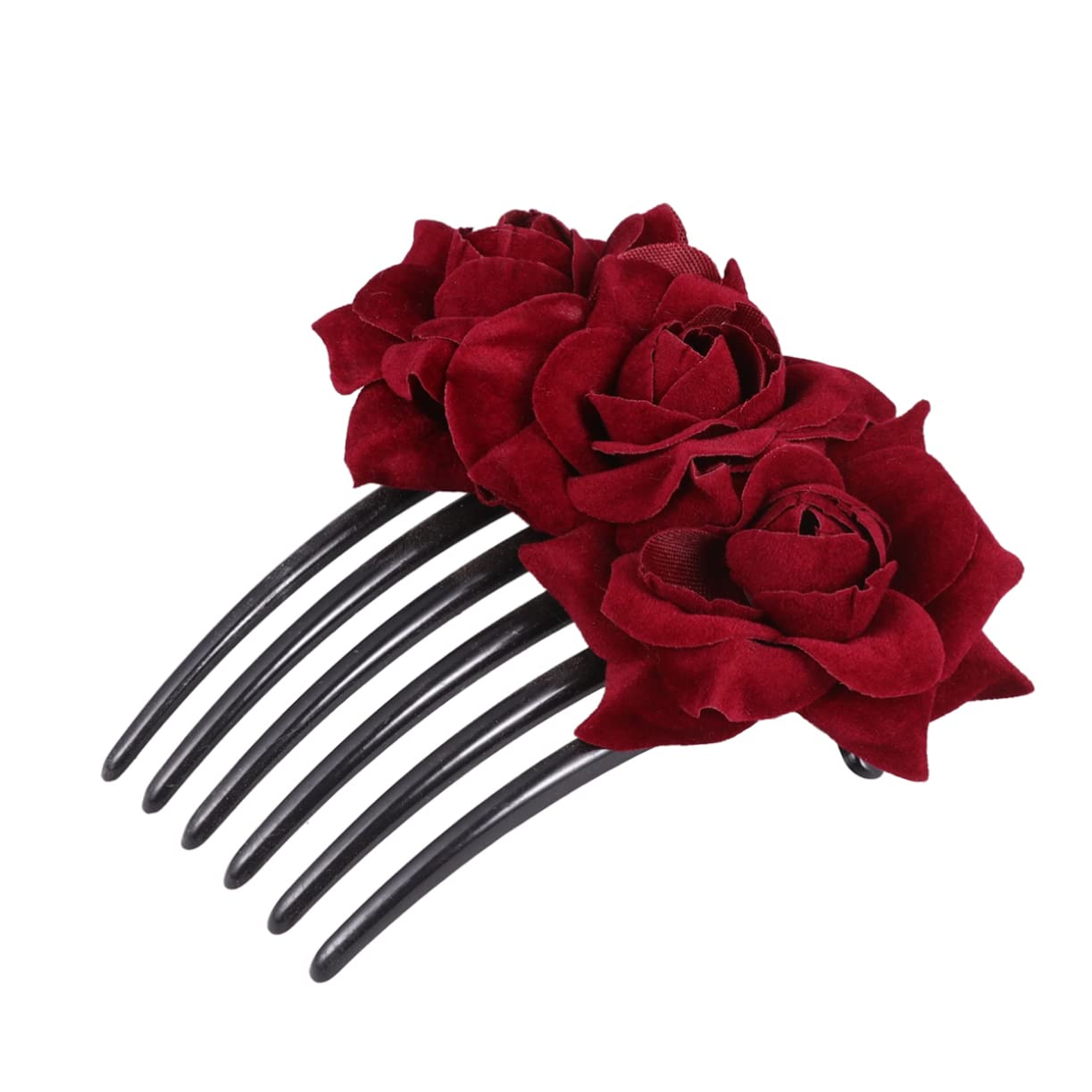 MAGICLULU 1pc Rose Hair Accessories Rose Flower Comb Floral Comb Floral Hair Comb Rose Hair Comb