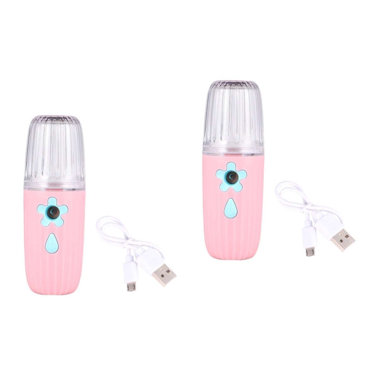 Package Contents: 2 Moisturizing Devices Features: - Size: 11 x 3.60 x 3.60 cm 4.32 x 1.41 x 1 in (1 x 1 x 1 in) Facial Moisturizing Mist - Material: ABS PC USB Portable Mist Sprayer - Made of ABS and PC, this moisturizing device is safe and durable. - Designed with a delicate, contoured opening for a gentle facial moisturizer. - One battery charge provides up to 45 uses for the Beauty Mist Sprayer. High-tech water mister: say goodbye to dry, cracked skin. - Simple USB connection for instant moisturizing at home or while traveling. Product Information: This facial skin moisturizer features a flower-shaped opening with anti-slip curves, offering a more secure grip than others. It makes an exquisite decoration on your dresser and is easy to carry wherever you go. Facial moisturizing cream. Our cool mist moisturizing machine is really convenient for your daily cleansing routine and easy to refill.