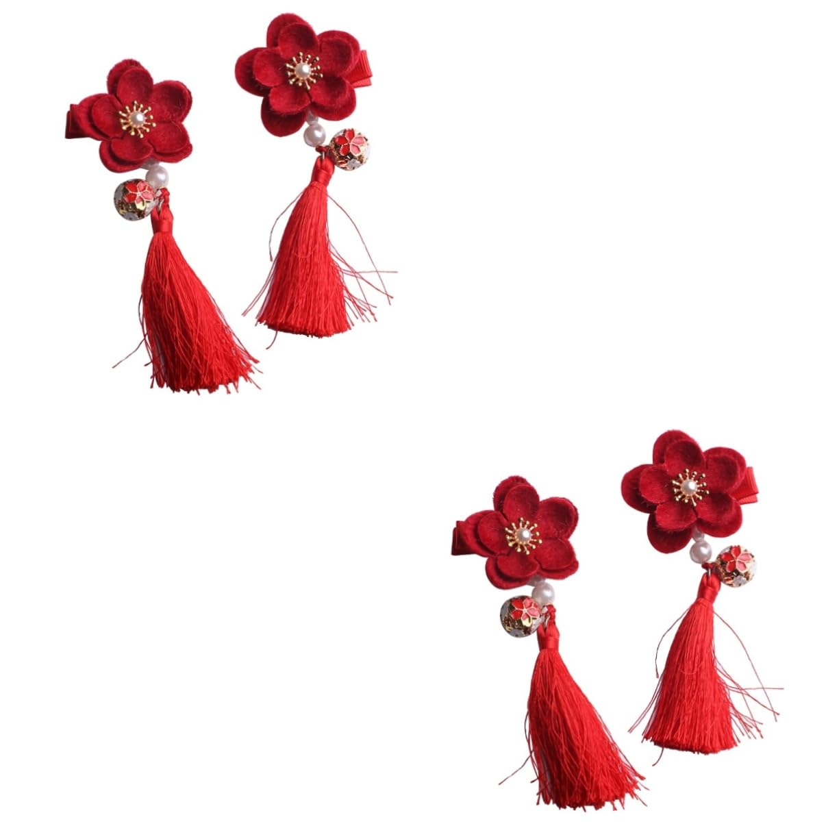 MAGICLULU 2 Pairs Hair Clip for Chinese Clothes Hair Clips Long Tassel Barrette Little Flower Barrettes Chinese Flower Hair Clips Asian Hair Chinese Style Child Red Side Clip