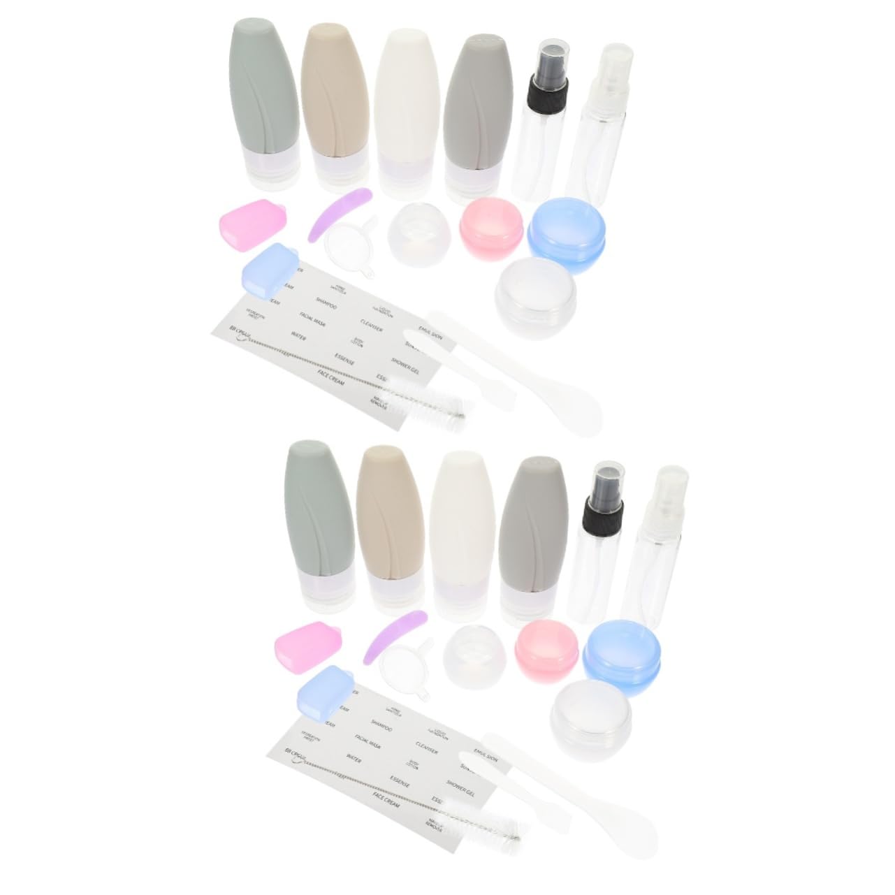 Package Include 4 x Spray Bottles 8 x Silicone Bottles 8 Bottles 2 x Brush 2 x Funnel 4 x Spatulas 2 x Spoon 2 x Sheet of Sticker 4 x Silicone Sleeves 2 x Storage Bag Features -Size (cream bottle):4.00X4.00X3.50cm/1.57X1.57X1 travel supplies. -Size (spray bottle):11.50X2.50X2.50cm/4.52X0.98X0 travel sub bottles. -Size (silicone bottle):12.00X3.30X3.30cm/4.72X1.30X1 toiletry bottles. -Material:PP, silicone empty cosmetic bottles -Size (small cream bottle):3.50X3.50X2.70cm/1.38X1.38X1 skincare liquid holder. -Color:Assorted Color cosmetics bottles reusable -Simple and generous look design can match well various cosmetics or skin care products, easy to fill travel empty bottles. -A choice for perfume, essential oil, hand , lotion, facial , face cream, body lotion, sunscreen, shampoo and more travel empty bottle. -Keep the cosmetics or skin care products inside, safe and portable to use. Good product and cosmetics bottles. -Manufactured of safe and durable material for long term use, fine craft with leak-proof design portable cosmetic bottle. Goods Description travel toiletries Are you looking for some professional, practical and reasonable cosmetic sub-packaging bottles? Our products will be your good choice.soap pump bottle Made with excellent craftsmanship and premium materials, they have excellent durability and practicality.daily use travel bottles Reasonable design structure makes them easy to store, which can help you save more space.cosmetic holders This is some very practical sub-packing containers, which will serve you very wellShampoo travel bottle: these reusable and refillable empty sub-packing bottles are one of for your travel or business trip. Cosmetology kit: , easy to fill cosmetics, liquid hand , shampoo, body wash, makeup removal water, gel, etc. Portable cosmetic bottle: they are made with excellent craftsmanship, have excellent texture, will not tear easily, and . Cream container: keep the cosmetics or skin care products inside, safe and portable to use. good product and . Bottle dispenser: they can carry cosmetics, liquid soap, cream, or something else, multipurpose and practical.