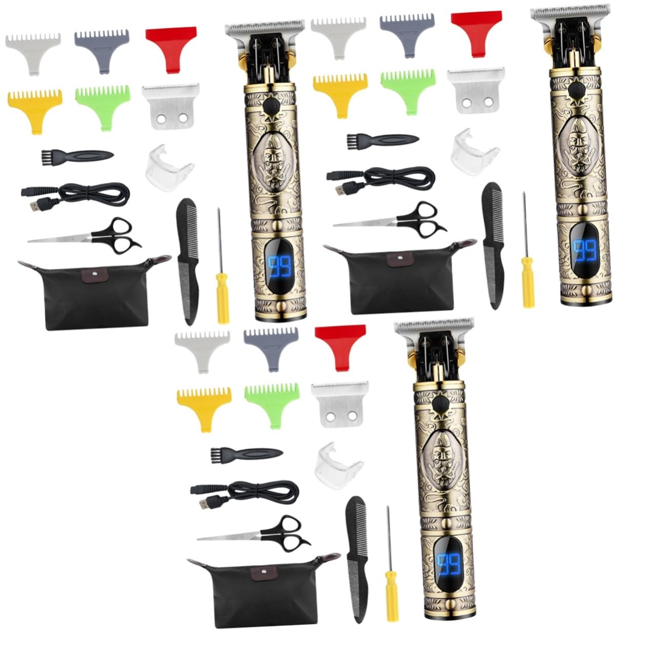 Package List 3 x clipping 12 x combs 3 x spare 3 3 x scissors 3 x comb 3 x screwdriver 3 x storage bag 3 x cleaning brush 3 x USB charging cable 3 x protective 3 x manual Features Battery: 3 mens trimmer. -Size:15.30X4.10X4.10cm/6.01X1.61X1 beard trimmer for men professional. Charging time: 2 hours cordless clippers -Color:As Shown beard trimmer Power: 10W edgers clippers for men -Material: Stainless steel maquina de cortar - Every detail is carefully crafted, so you experience the high durability and practicality clippers. - Acute cutting, clipping your fast without jamming debris cordless clippers for men. - Carving design clipper body, comfortable hand feeling and nonslip in use clippers for men professional. Working time 180 minutes mens clippers - Stainless steel suspension bracket, blocking debris, will not block your eye of sight trimmer. - LCD display screen making it more visible of instant battery status professional trimmer. Goods Description trimmers for men The exquisite craftsmanship can serve you well without breaking easily.cordless trimmer The trimmer is convenient and practical, with excellent texture, and without being easily damaged.mens trimmer This is a very practical trimmer