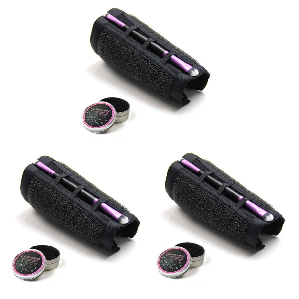 Package Include 3 Eyeshadow Removal Cleaner 3 Makeup Brush Armband Features - Color: Black makeup cleaning brush with armband. - Material: Plastic color switch makeup brush cleaner. - Size: Approx. 11 7 1.5cm 4.3 2.8 0.6 inch (L W H) eyeshadow brush cleaner. - Stretch nylon neoprene fabric on all sides, static- , moisture-retentive and sweat- limpiador de brochas de maquillaje - Adjustable mesh strips, closely fit and nonskid. Strongly elastic materials perfectly fit for arms eyeshadow cleaning brush. - Large-area hairbrush clear band allows you to brush as you please makeup brush arm band. - Elastic pulling strips allows the hairbrush infixed readily available. Sophisticated stitching techniques make it strong and durable makeup brush arm holder. Goods Information makeup brush arm band When the cosmetic brush is colored, skid your brush back and forth on the cleaning band to instantly clean the brush.makeup brush You can wear brush cleaner on your arm during facial makeup.make up brush cleaner Cleaner designed for makeup brush cleans the brush hair more quickly and thoroughly, and the materials are gentle to your hands.black eyeshadow Loop it around your arm for use, convenient and accessibleMakeup brush : eyeshadow removal cleaning makeup cleaner and armband for easy makeup clean. Eyeshadow: stretch nylon neoprene fabric on all sides, static- , moisture-retentive and sweat- . eyeshadow cleaning brush. Limpiador de brochas de maquillaje: large-area hairbrush clear band allows you to brush as you please. Color makeup brush cleaner: adjustable mesh strips, closely fit and nonskid. strongly elastic materials perfectly fit for arms. Makeup sponge cleaners: large-area hairbrush clear band allows you to brush as you please. removal color sponge.