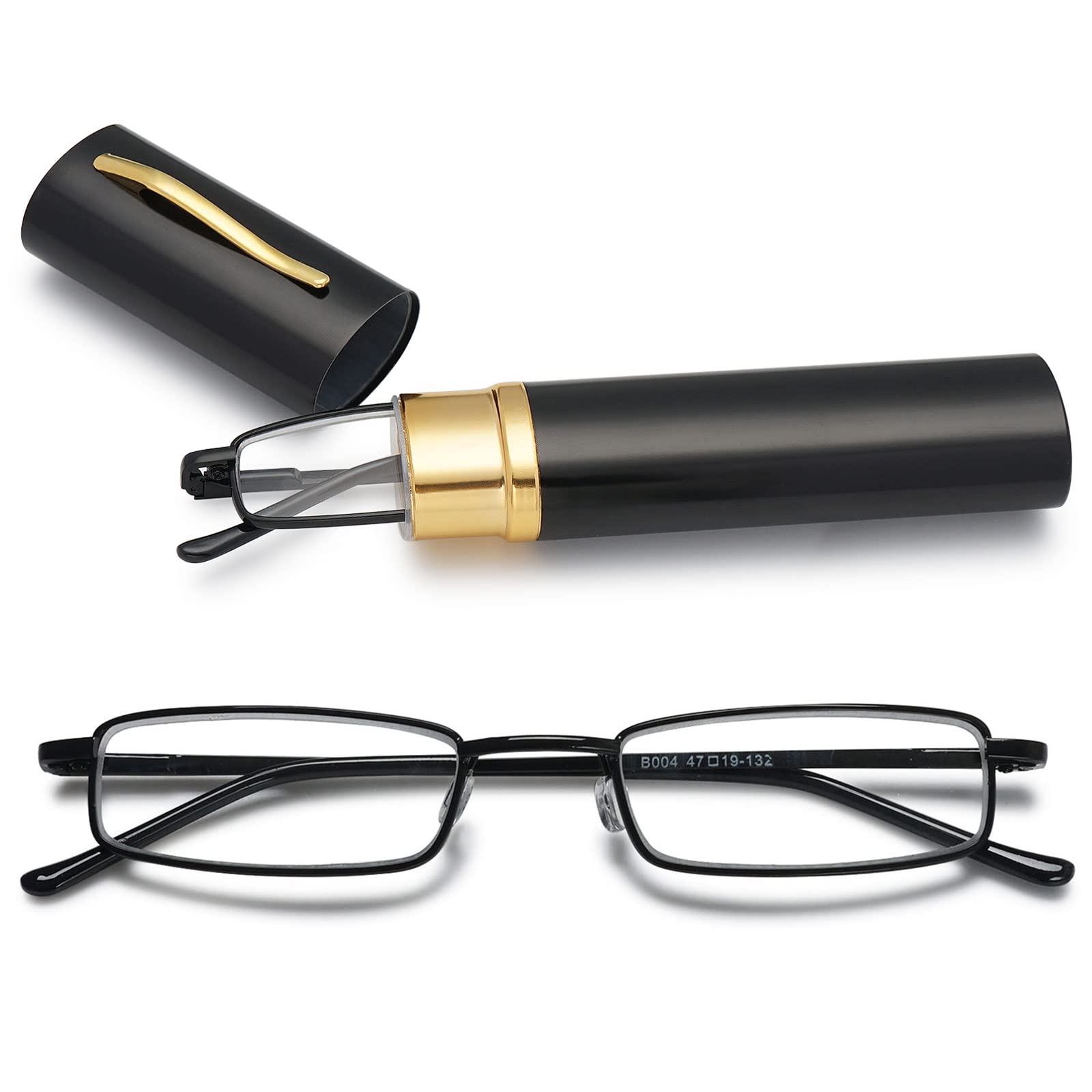 Anti-blue light glasses: The glasses can effectively block harmful blue light from mobile phones / computers / readers / play / playing / tablets / televisions and protect our eyes.Let them wear in the office all day without a dizziness.Light & fashionable: If you like light and fashionable glasses, you will love these glasses with metal frames.Ultra -light metal frame and spring hinge for durability and comfortable long -term wear.Mini, light, portable, narrow reading glasses with spring hinges and case: to fit all facial forms.The classic, rectangular frame and the black and gold color are suitable for both business occasions and leisure.If you are looking for light and robust reading glasses, Magimodac reading glasses are your perfect choice.As thick as a pen, the full frame made of metal makes it more durable and stable, so that you do not deform or damage yourself easily when using.Exquisites and stylish design, compact and light, easy to wear, comfortable and not easy to deform.These reading glasses have + 100 + 1.50 + 2.00 + 2.50 +3.00 +3.50 glass width: 46mm, glass height: 20mm, bridge width: 20mm.Anti-Blaulicht-Gläser: Die Gläser können schädliches Blaulicht von Mobiltelefonen / Computern / Lesegeräten / Spielen / Tablets / Fernsehern effektiv blockieren und unsere Augen schützen. Lassen Sie sie den ganzen Tag ohne Schwindelgefühl im Büro tragen. Leicht & Modisch: Wenn Sie leichte und modische Brillen mögen, werden Sie diese Brille mit Metallrahmen lieben. Ultraleichter Metallrahmen und Federscharnier für Haltbarkeit und komfortables langfristiges Tragen. Mini, Leichte, tragbare, schmale Lesebrille mit Federscharnieren und Etui: An alle Gesichtsformen zu passen. Der klassische, rechteckige Rahmen und die schwarze und goldene Farbe eignen sich sowohl für geschäftliche Anlässe als auch Freizeit. Wenn Sie auf der Suche nach leichten und robusten Lesebrillen sind, sind Magimodac Lesebrillen Ihre perfekte Wahl. So dick wie ein Stift, der Vollrahmen aus Metall macht sie haltbarer und stabiler, so dass sie sich beim Verwenden nicht leicht verformen oder beschädigen. Exquisites und stilvolles Design, kompakt und leicht, einfach zu tragen, bequem und nicht einfach zu verformen. Diese Lesebrillen haben + 100 + 1,50 + 2,00 + 2,50 +3,00 +3.50 Glasbreite: 46mm, Glashöhe: 20mm, Stegbreite: 20mm.MAGIMODAC Herren Damen Lesebrille Anti Blaulicht Brille mit sehstärke Blaulichtfilter Metall Lesehilfe schmale Lesebrillen mit Stiftetui Schwarz 3.5 Dioptrien