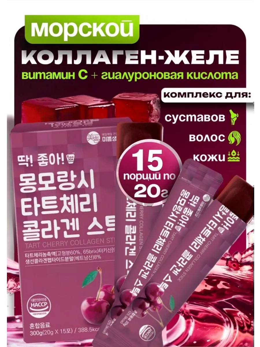 | Состав | Полный состав на фото; коллаген; гиалуроновая кислота; Рыбный коллагеновый пептид; вишня |