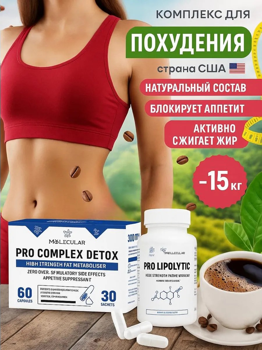 | Комплектация | PRO LIPOLYTIC ( Липолитик ) капсулы для похудения 60 штук + 30пакетив саше кофе для похудения |