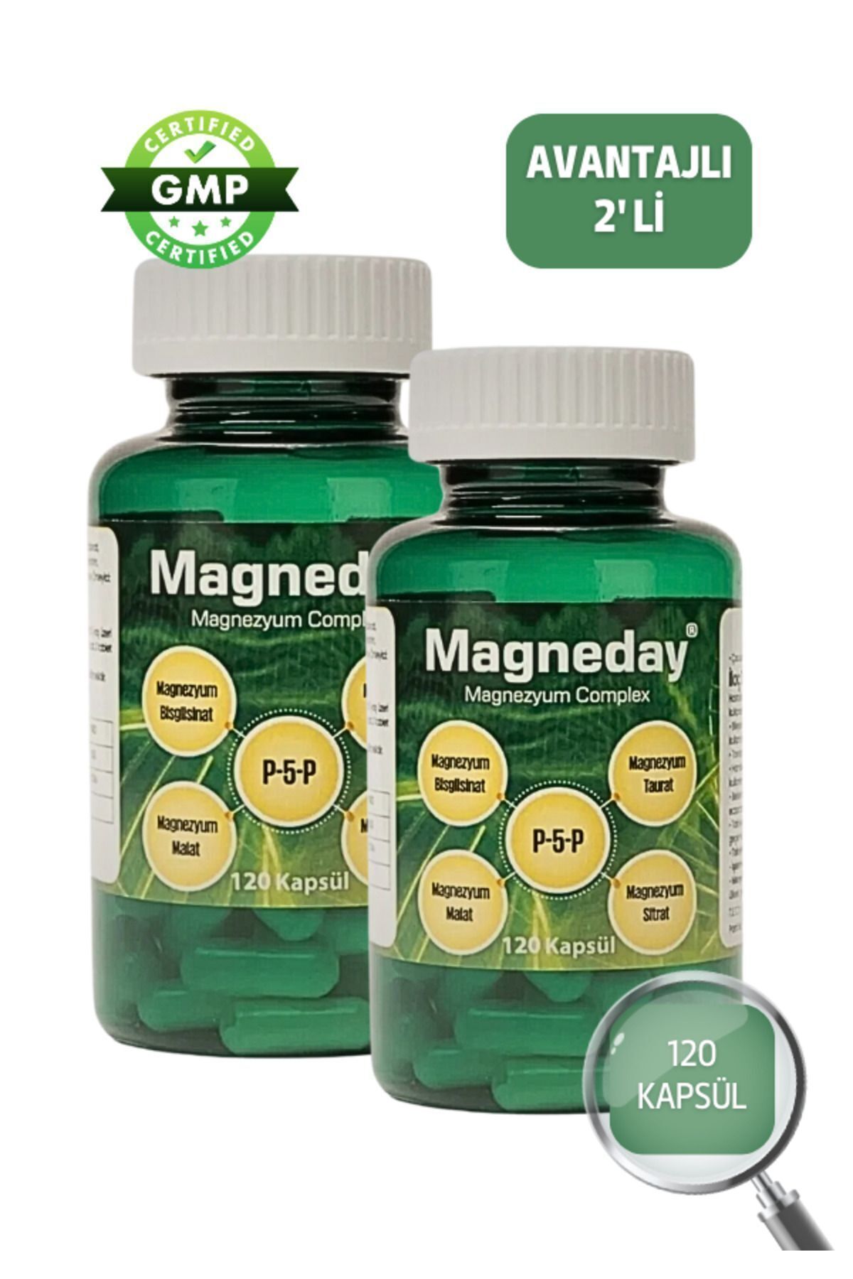 Magneday Magnesium Complex 120 Capsules*2 Pieces - bisiglinate I Taurate I Malate I Citrate I Vitamin B6