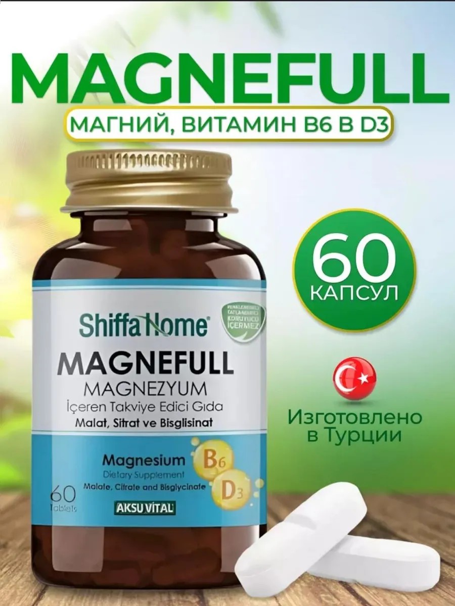 Магний от турецкого производителя SHIFFA HOME, сочетает в себе все необходимые компоненты для вашего здоровья.