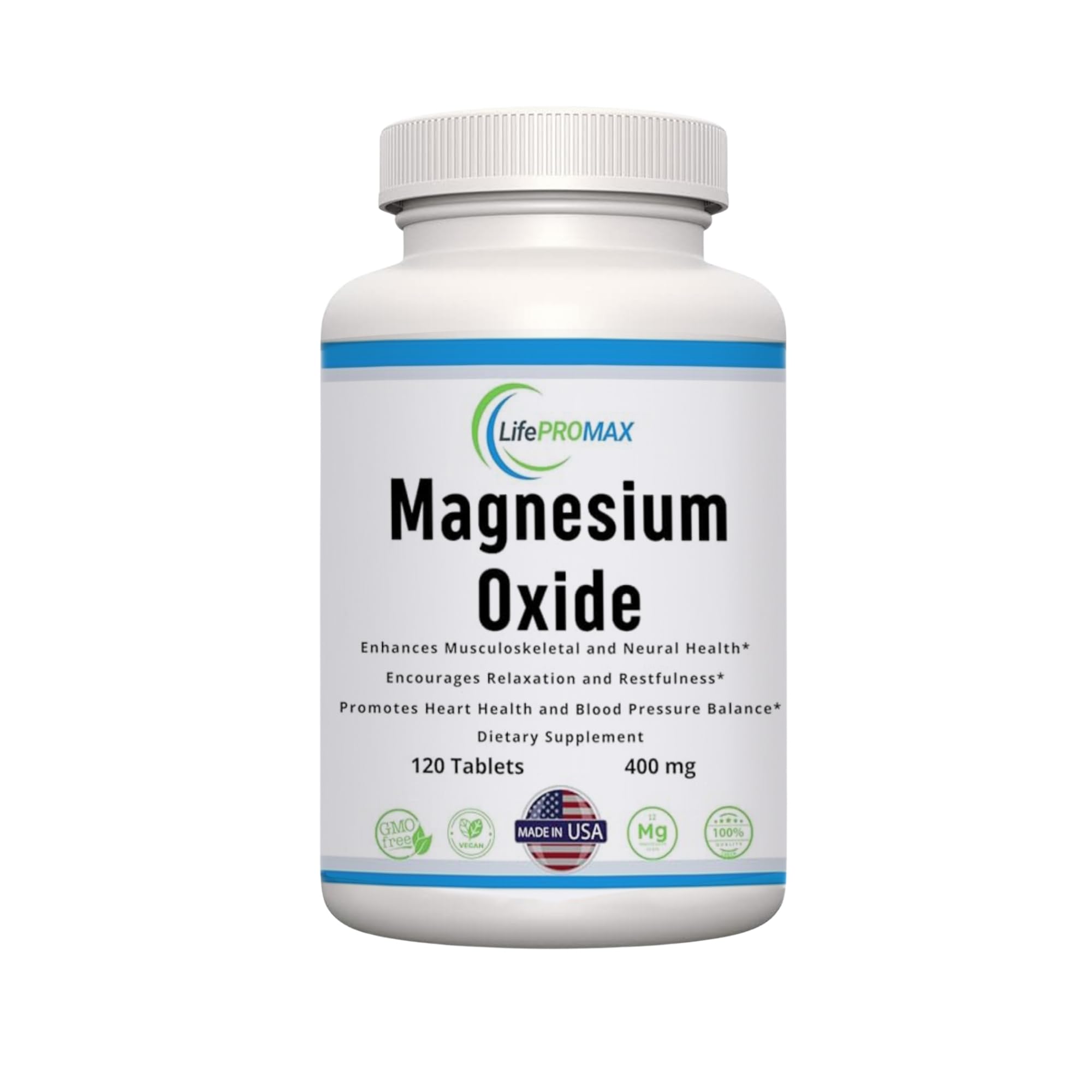 Suitable for those with dietary restrictions or preferences. A 4-month supply based on the recommended dosage, providing value and convenience for long-term supplementation. Magnesium assists in converting food into energy, making it essential for reducing fatigue and enhancing physical performance. Helps prevent muscle cramps and supports muscle relaxation, making it ideal for athletes or those experiencing muscle tension. Magnesium is vital for bone density and strength, working alongside calcium to maintain strong bones and teeth. Magnesium plays a crucial role in over 300 biochemical reactions in the body, supporting muscle and nerve function, maintaining a healthy immune system, and promoting cardiovascular health. Each tablet contains 400mg of Magnesium Oxide, providing a significant daily dose to support overall health and wellness.