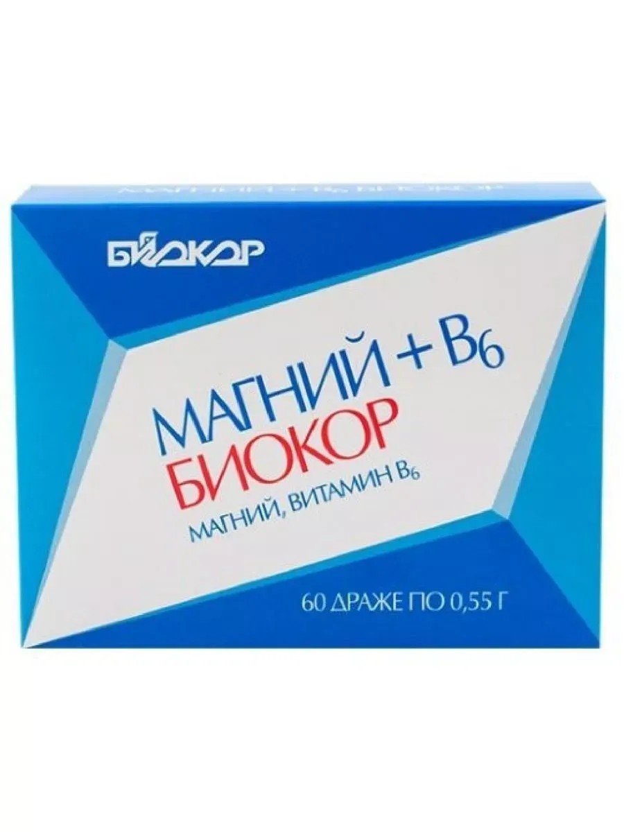 МАГНИЙ+В6 БИОКОР N60 ДРАЖЕ ПО 0,55Г«Магний + В6 Биокор» - средство на основе цитрата магния и витамина B6.Биологически активная добавка (БАД) к пище