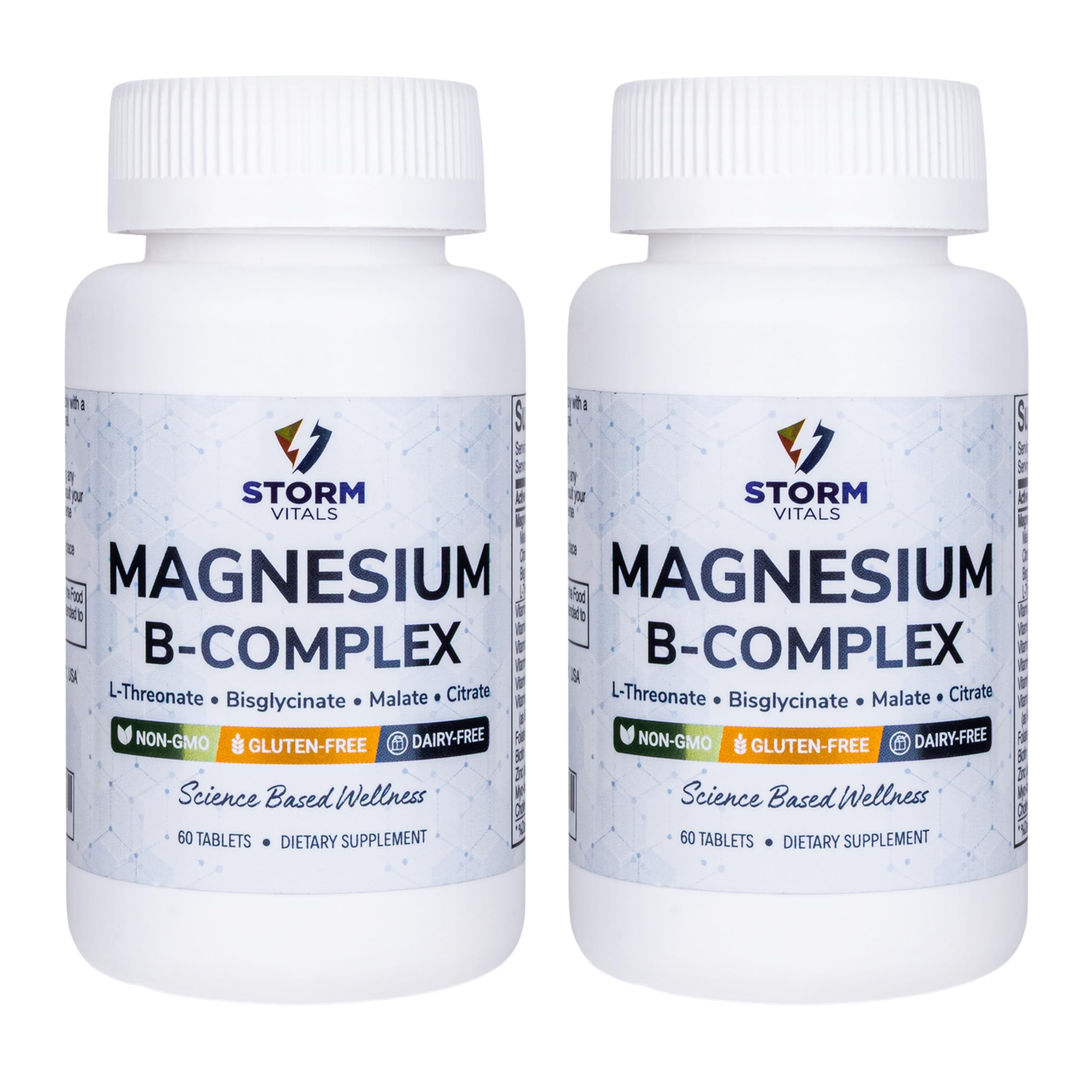 Storm Vitals Magnesium B-Complex is a thoughtfully crafted dietary supplement designed for daily nutritional support. Each tablet delivers a combination of four magnesium forms—L-Threonate, Malate, Citrate, and Bisglycinate—along with a comprehensive B-vitamin blend including B1, B2, B3, B5, B6, Biotin, Folate, and B12. The formula is further enhanced with Myo-Inositol, Choline, and Zinc Picolinate, and developed with time-release technology to gradually supply nutrients throughout the day. Each bottle contains 60 tablets that are coated for ease of swallowing and designed to fit into your daily routine effortlessly. Storm Vitals Magnesium B-Complex is manufactured in a facility that complies with Good Manufacturing Practices (GMP) and is formulated without artificial flavors, sweeteners, or preservatives. It is also gluten-free, making it suitable for a variety of dietary preferences.CLEAN RESPONSIBLE FORMULATION: Gluten-free and made without artificial flavors, sweeteners, or preservatives. Produced in a cGMP-compliant facility for quality assurance. ENHANCED DAILY FORMULA: Includes Myo-Inositol, Choline, and Zinc Picolinate — ingredients chosen for modern nutritional supplementation. COMPLETE B-VITAMIN PROFILE: Features eight essential B-vitamins including B1, B2, B3, B5, B6, Biotin, Folate, and B12 — supporting a balanced nutrient intake. EASY TO SWALLOW TABLETS: Coated tablets are designed for smooth and convenient consumption, making it easy to include this formula in your daily routine. DIVERSE MAGNESIUM SOURCES: Contains L-Threonate, Malate, Citrate, and Bisglycinate—four highly regarded forms of magnesium to help meet your daily intake goals.