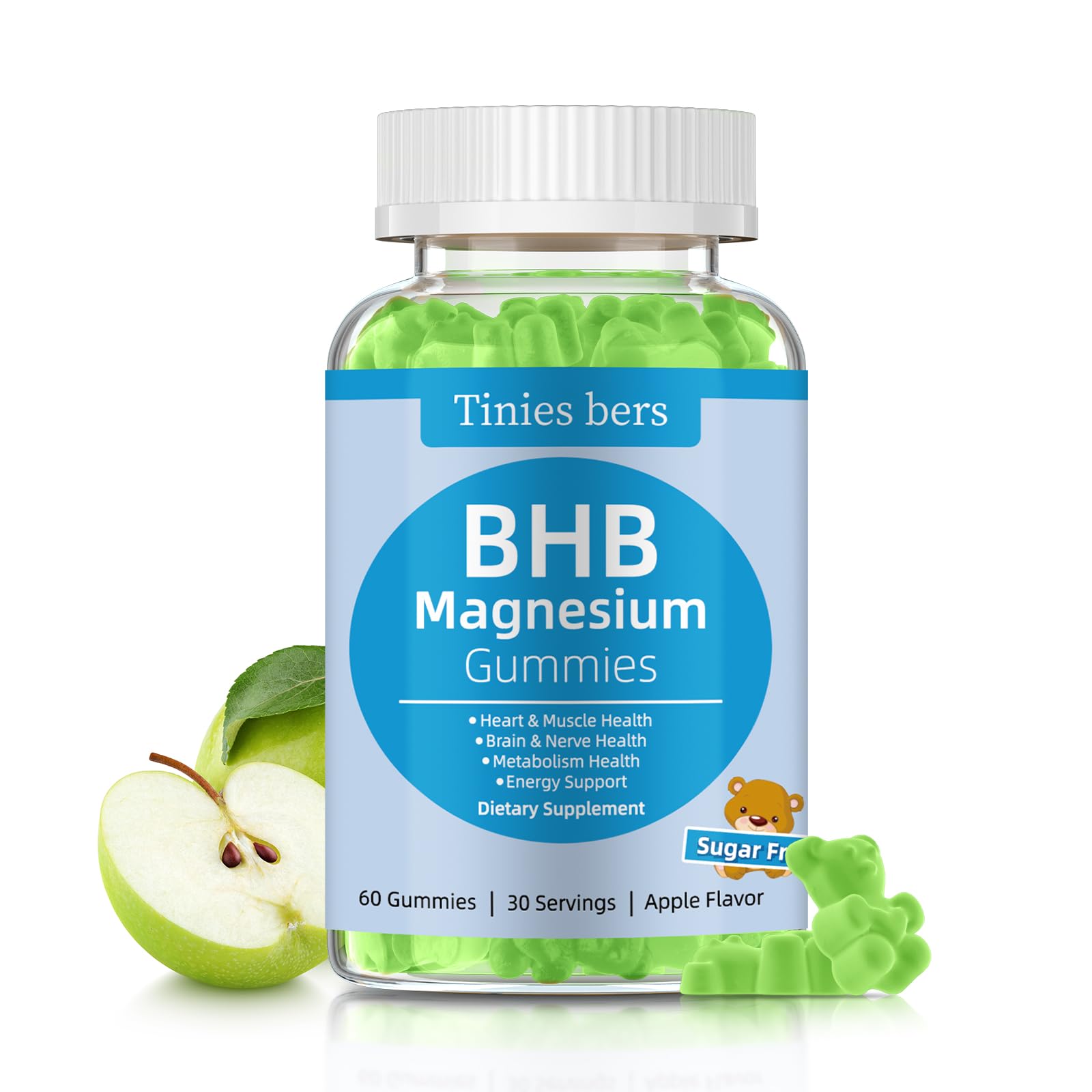 Yummy and Health: Tinies bers magnesium bhb gummies with a soft texture and apple flavor, are GMP compliant and Lab-tested. If you receive Tinies bers product with any problems, please contact us immediately. The EXP date and production batch number are at the bottom of each bottle. Keto BHB Gummies: Please note: safe dosage support keto and energy supply, but Tinies bers DOES NOT recommend maintaining a long-term ketogenic state!. Sugar Free Gummies: All gummies supplements offered by Tinies bers are sugar free (no sugar or cane sugar), no sugar coating and no sugar within. The added xylitol replaces traditional sugar, giving keto supplements gummies a sweet taste too. Health Benefits: For Brain, BHB reduce free radicals by about 40 (compared to glucose). crossing the blood-brain barrier, promote cognition and nerve protection. For Heart, bhb is priority energy form, increase ATP production. For Muscle, bhb provide continuous energy, accelerate muscle recovery and reduce protein breakdown. BHB Gummies: Tinies bers magnesium BHB gummies contain bhb 1,000mg per serving. BHB is 1 of 3 ketone produced by fat metabolism, accounting for 78 , and as an alternative energy source when our body lacks glucose.