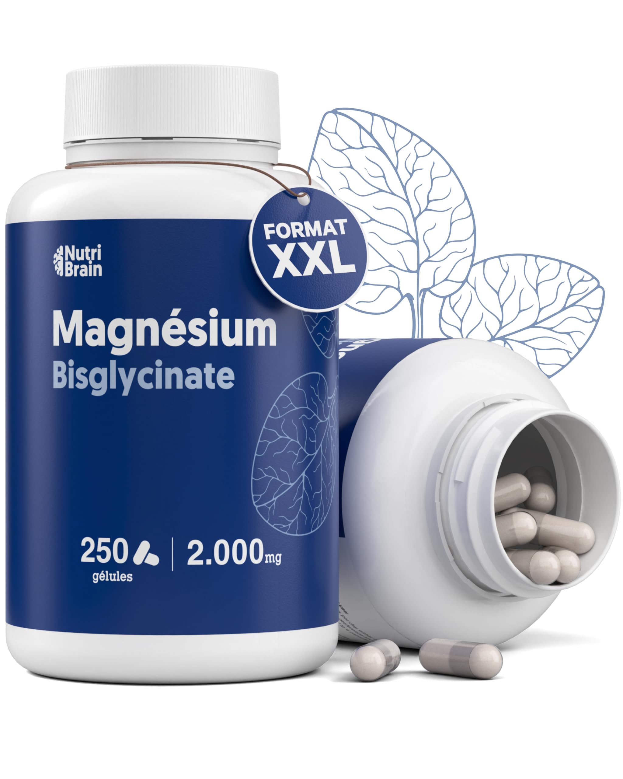 XXL BOTTLE (250 CAPS) HIGH POTENCY PHARMACEUTICAL QUALITY: Made in Spain with pharmaceutical grade bisglycinate, our magnesium offers a significantly higher quantity of capsules per bottle, ensuring a prolonged supply and exceptional value. Produced according to all European quality standards, it is 100 pure and without additives, ensuring maximum effectiveness, concentration, traceability and product safety. ? MORE ENERGY, LESS FATIGUE BETTER COGNITIVE PERFORMANCE: Magnesium bisglycinate is involved in neurotransmitter production and cellular respiration, increg energy and reducing fatigue. Stay active and productive, facing everyday life with vitality, clarity and focus. SUPPORT FOR MUSCLE AND BONE HEALTH: Essential for muscle contraction and relaxation, our magnesium bisglycinate prevents cramps and spasms, while improving calcium absorption and collagen synthesis. It contributes to stronger, more resilient muscles and bones, ideal for fast and efficient recovery after exercise, ensuring optimal performance. IMPROVES SLEEP AND REDUCES STRESS THROUGH SYNERGISTIC EFFECT: Our magnesium bisglycinate, containing glycine, offers a unique synergistic effect. This combination of magnesium and glycine not only improves sleep quality by promoting deep relaxation and reducing sleep latency, but it also calms the nervous system, reducing stress and anxiety, and providing a balanced mood for a restful night's rest. MAXIMUM BIOAVAILABILITY AND DIGESTIVE TOLERANCE: Pure magnesium bisglycinate is much better absorbed than other forms of magnesium, ensuring that the body integrates and uses it significantly more efficiently. Additionally, it does not cause digestive upset or laxative effects, making it superior to other forms of magnesium. This makes it an ideal option for prolonged use and perfect for people with sensitive digestive systems.FLACON XXL (250 CAPS) DE HAUTE PUISSANCE ET QUALITÉ PHARMACEUTIQUE: Fabriqué en Espagne avec du bisglycinate de qualité pharmaceutique, notre magnésium offre une quantité nettement supérieure de capsules par flacon, assurant une fourniture prolongée et une valeur exceptionnelle. Produit selon toutes les normes de qualité européennes, il est 100 pur et sans additifs, garantissant une efficacité maximale, une concentration, une traçabilité et une sécurité du produit. ? PLUS D'ÉNERGIE, MOINS DE FATIGUE ET MEILLEURE PERFORMANCE COGNITIVE: Le bisglycinate de magnésium est impliqué dans la production de neurotransmetteurs et la respiration cellulaire, augmentant l'énergie et réduisant la fatigue. Restez actif et productif, en affrontant le quotidien avec vitalité, clarté et concentration. SOUTIEN À LA SANTÉ MUSCULAIRE ET OSSEUSE: Essentiel pour la contraction et la relaxation musculaires, notre bisglycinate de magnésium prévient les crampes et les spasmes, tout en améliorant l'absorption du calcium et la synthèse du collagène. Il contribue à des muscles et des os plus forts et plus résistants, idéal pour une récupération rapide et efficace après l'exercice, assurant une performance optimale. AMÉLIORATION DU SOMMEIL ET RÉDUCTION DU STRESS PAR EFFET SYNERGIQUE: Notre bisglycinate de magnésium, contenant de la glycine, offre un effet synergique unique. Cette combinaison de magnésium et de glycine améliore non seulement la qualité du sommeil en favorisant une relaxation profonde et en réduisant la latence du sommeil, mais elle calme également le système nerveux, réduisant le stress et l'anxiété, et offrant une humeur équilibrée pour une nuit de repos réparatrice. BIODISPONIBILITÉ MAXIMALE ET TOLÉRANCE DIGESTIVE: Le bisglycinate de magnésium pur est beaucoup mieux absorbé que d'autres formes de magnésium, assurant que le corps l'intègre et l'utilise de manière significativement plus efficace. De plus, il ne cause pas de troubles digestifs ni d'effets laxatifs, ce qui le rend supérieur aux autres formes de magnésium. Cela en fait une option idéale pour une utilisation prolongée et parfaite pour les personnes ayant un système digestif sensible.