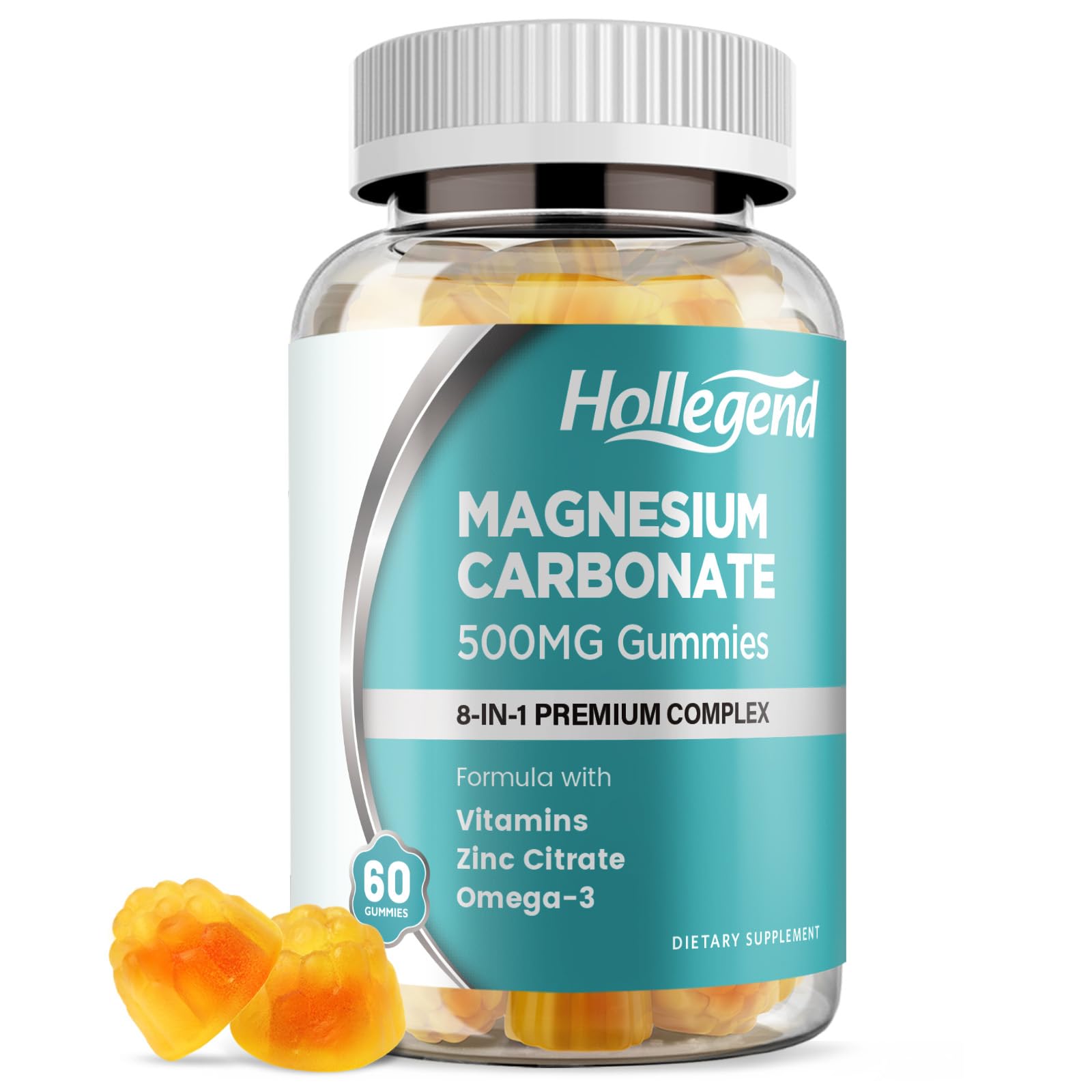 Magnesium Carbonate Gummies Magnesium Carbonate Complex 500mg Supplement with D3 & K2 for Women & Men with Zinc Vitamin C B6 & B12 Muscle & Digestive Support Mango Flavor Sugar Free 60 Ct