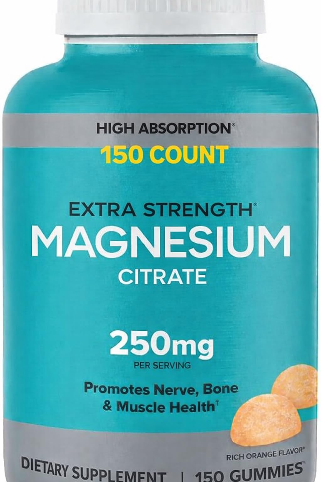 Magnesium Citrate High Absorption Gummies are a delicious alternative to pills. In a convenient rich orange flavor, these gummies deliver 250 mg of Magnesium. It help promotes nerve, bone and muscle health.