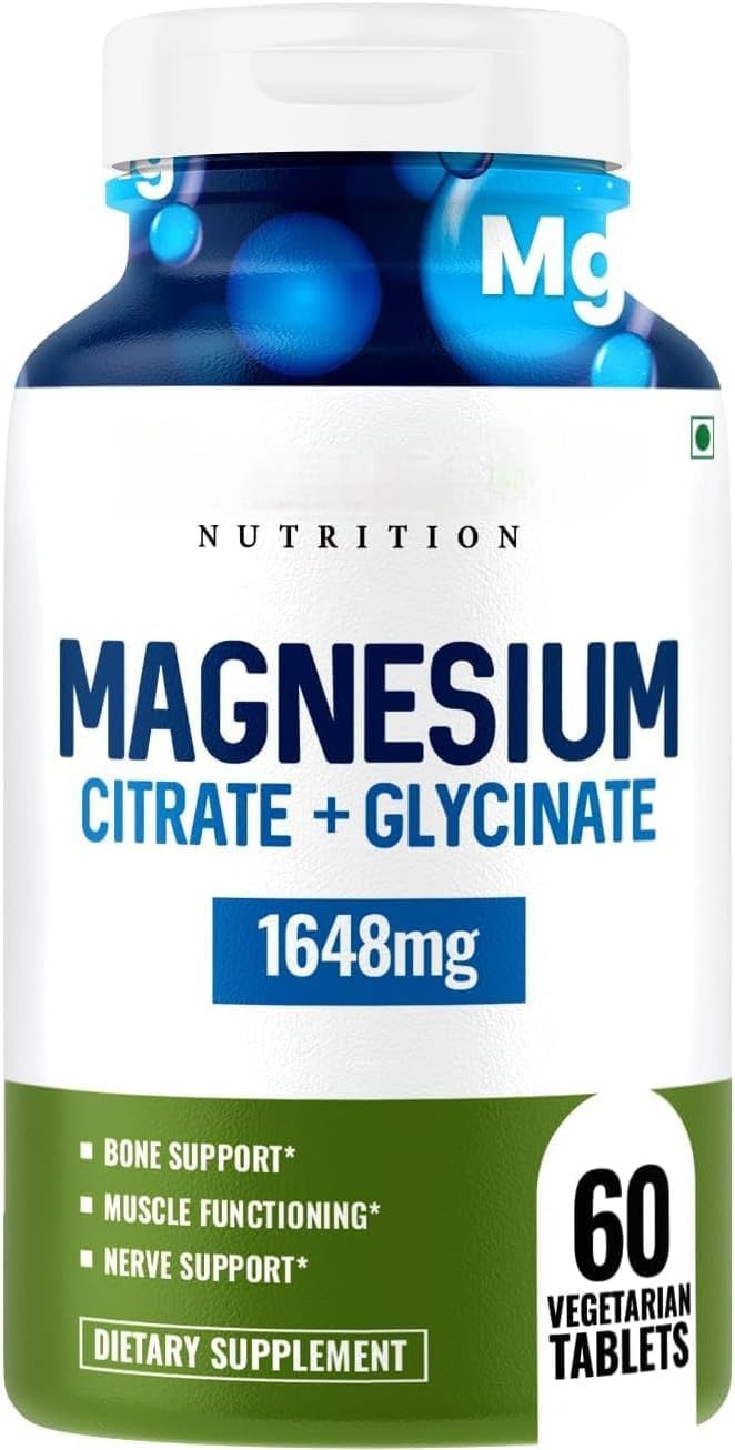 Magnesium Citrate + Glycinate 1648 mg Supplement for Men and Women - 60 Veg Tablets