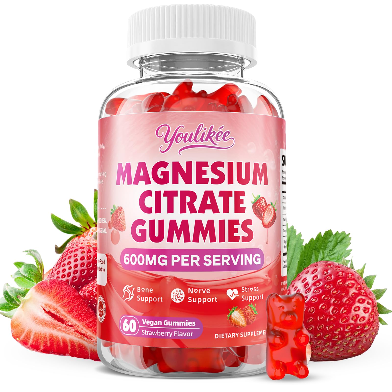 Magnesium Citrate Gummies High Absorption Magnesium Gummies for Adults Magnesium Supplement for Relaxation Vegan Sugar-Free Strawberry Flavor 60 Count