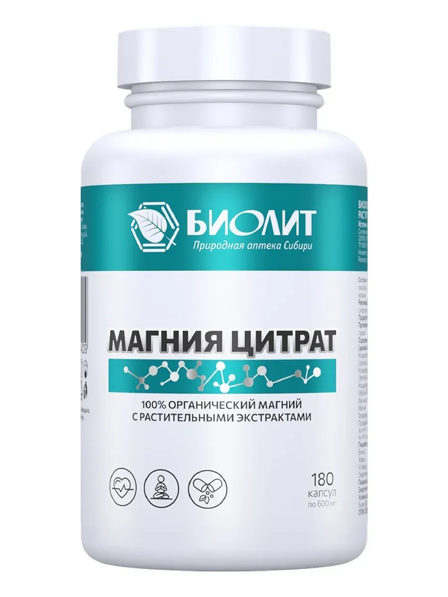 МАГНИЯ ЦИТРАТ С РАСТИТЕЛЬНЫМИ ЭКСТРАКТАМИ N180 КАПС ПО 600МГ /БИОЛИТ