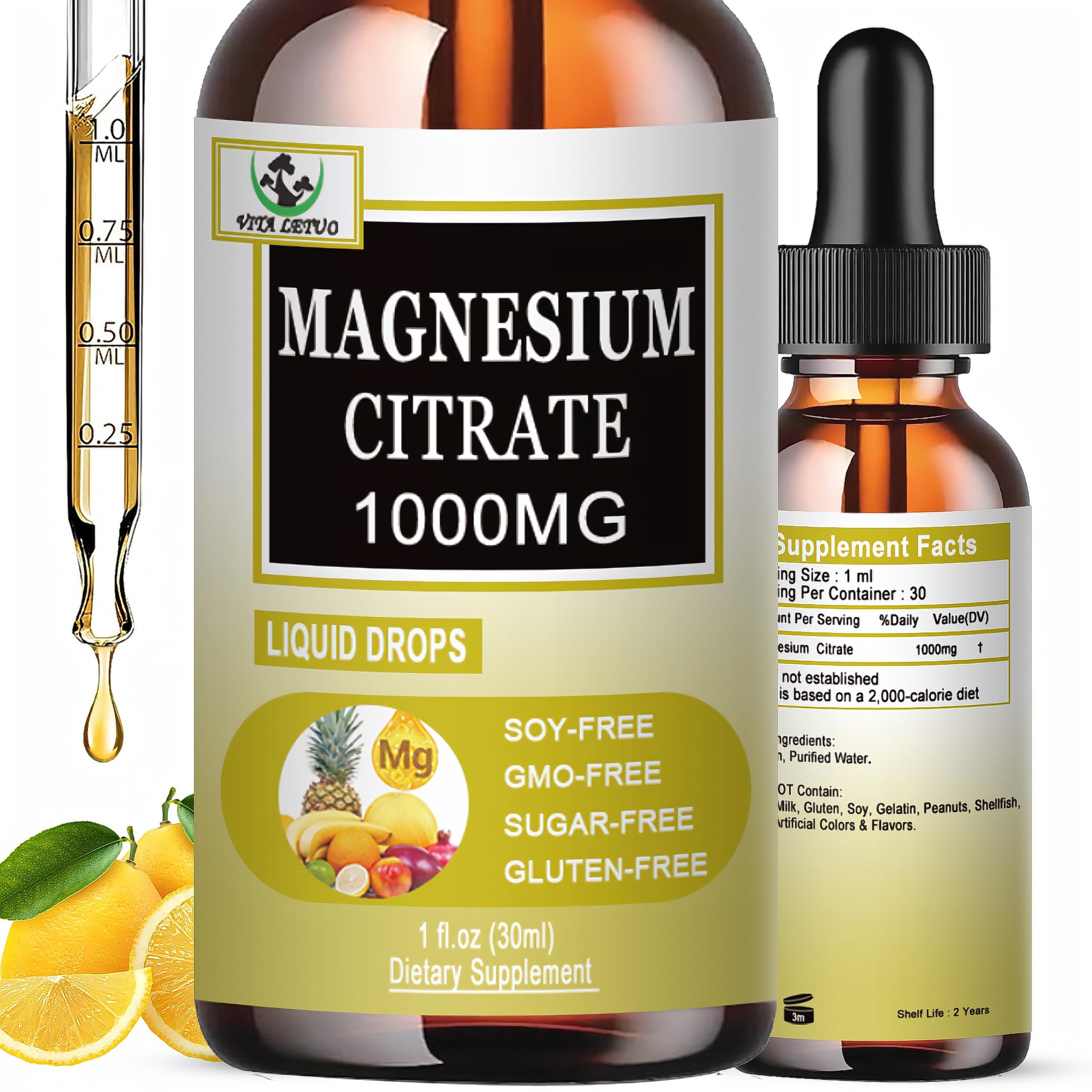 Why Choose Our Magnesium Citrate Drops? Experience fast, gentle relief with 1000mg of highly absorbable Magnesium Citrate in every serving. Our Magnesium Citrate Liquid supports muscle relaxation, stress relief, and regularity . Made with clean, non-GMO ingredients and no artificial additives, it's the easy-to-take solution your body can actually absorb. Just a few drops a day to help you feel calm, balanced, and energized.Made with Care Love: At Moncatlin, we are dedicated to providing you with exceptional quality and service. If you are not completely satisfied with our Magnesium Citrate Liquid Drops, please contact us. We value your feedback and are committed to ensuring your satisfaction. Each container offers 30 servings for your convenience. Pure Powerful Ingredients: Our Magnesium Citrate Liquid Drops are made in a GMP-certified facility, ensuring the highest quality standards. This formulation is free from GMOs, gluten, preservatives, and artificial additives, offering you the purest and most effective supplement available, with optimal bioavailability compared to other forms. Fast Superior Absorption: Our liquid magnesium citrate delivers 1000mg per serving with faster absorption than magnesium citrate capsules—no pills to swallow, no fillers to digest. Gentle on the stomach and easy to customize, it's ideal for those seeking clean, effective support. No pills, no sugar, no artificial additives—just pure, vegan, non-GMO ingredients. Made in the GMP with non-GMO, vegan ingredients for stress, muscle, and digestive balance you can trust. . Sleep, Muscles Heart Support: Our Magnesium Citrate supplement delivers a bioavailable form of magnesium that aids in supporting muscle relaxation and recovery, contributes to improved sleep quality, and supports cardiovascular health. Ideal for those struggling with muscle discomfort, stress, or restless nights—our formula offers gentle, effective relief you can trust. . Why Choose Our Magnesium Citrate Drops? Experience fast, gentle relief with 1000mg of highly absorbable Magnesium Citrate in every serving. Our Magnesium Citrate Liquid supports muscle relaxation, stress relief, and regularity . Made with clean, non-GMO ingredients and no artificial additives, it's the easy-to-take solution your body can actually absorb. Just a few drops a day to help you feel calm, balanced, and energized. .