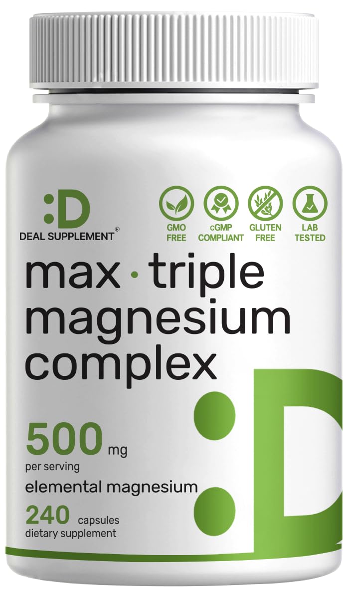 These statements have not been evaluated by the FDA. This product is not intended to diagnose, treat, cure, or prevent any disease. Quality Ensured – Magnesium supplement with non-GMO ingredients that are third party lab tested and passed. Made in a cGMP compliant facility without gluten, dairy, eggs, soy, and wheat. Purpose – Designed for men and women who want a reliable magnesium complex made with trusted ingredients. Created to reflect a balanced range of essential elemental magnesium types in one formula. Serving Size – Each bottle provides up to an 80-day supply with 240 capsules total. Every serving of three capsules delivers 500mg of elemental magnesium for consistent daily intake. Benefits Use – Provides a focused blend of three comprehensive magnesium forms including glycinate, citrate, and oxide. Offers a well-rounded mineral profile that is simple to add to your daily routine. Special Features – Triple action magnesium complex featuring magnesium glycinate, magnesium citrate, and magnesium oxide, crafted to deliver a highly concentrated elemental source in smooth, easy-to-consume capsules.