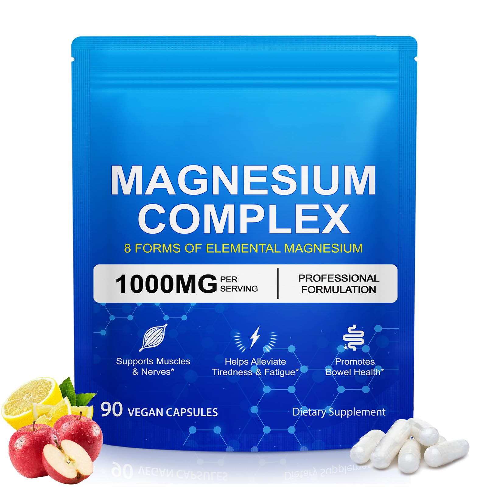 Magnesium Complex 8-in-1 combines 1800mg of Magnesium Glycinate, Malate, and Citrate, formulated to help support bodily balance, energy production and relaxation. Easy to take and made for daily wellness, it's a simple way to support your healthy lifestyle. ✓ Support bodily balance ✓ Supports ?Energy Boost? ✓ Helps Alleviate Tiredness Fatigue ? Ingredients: Magnesium Oxide, Magnesium Glycinate, Magnesium Malate, Magnesium Taurate, Magnesium Citrate, Magnesium Carbonate, Magnesium Aspartate, Magnesium Orotate HOW TO USE: Take two (2) capsules daily with food, or as recommended by your healthcare professional. Do not exceed the recommended daily intake. ? Difficulty swallowing capsules? Simply open the capsule, pour the contents into your favorite juice, smoothie, or yourgut, and mix well.✓ Superior Quality Manufactured on premium production lines with batch-by-batch testing, delivering the safest nutritional support. Multi-Benefit Support? Our 8-in-1 magnesium capsules effectively relieve fatigue, promote gut health, and support mental and physical relaxation for comprehensive wellness. ? Gentle Formula? Features plant-based capsules with sustained-release technology for easy digestion and absorption. 1000mg High-Potency Formula Each serving provides 1000mg of elemental magnesium to help support bodily balance, energy production, and overall vitality, effortlessly meeting daily health needs. 8-in-1 Magnesium Complex Blend? Combines Magnesium Glycinate, Malate, Citrate, Taurate, Carbonate, Aspartate, Orotate Oxide.Through scientifically balanced ratios, it achieves maximum absorption and multi-functional benefits, comprehensively supporting natural bodily functions and providing sustained, holistic nourishment.
