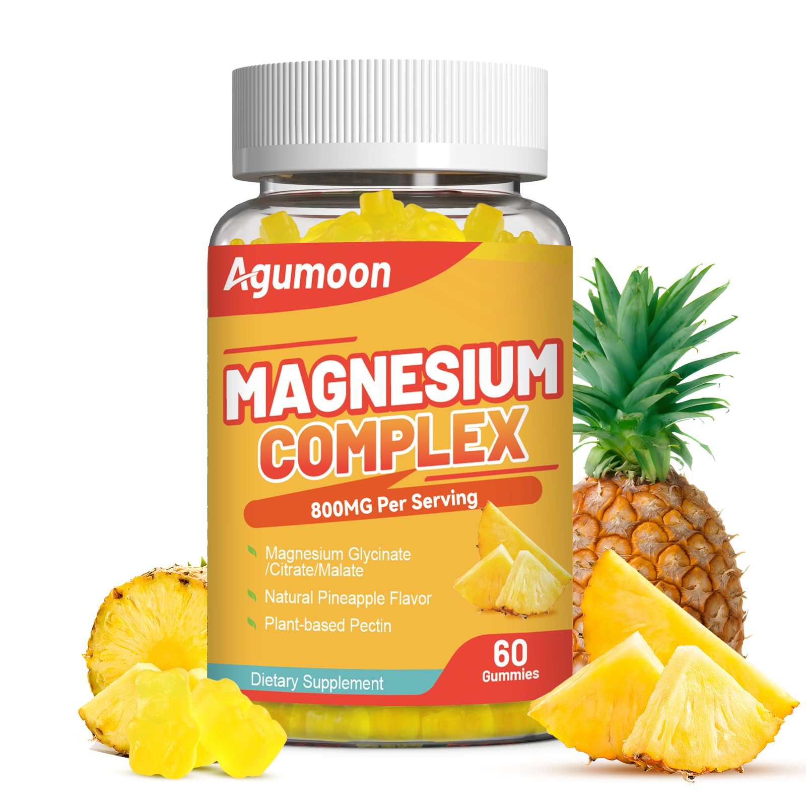 Magnesium Complex Gummies 800mg with Zinc & Vitamins B6 B12 C D3 60 Pineapple Gummies High Absorption Glycinate Citrate Malate Non-GMO Gluten-Free 60 Count (Pack of 1)