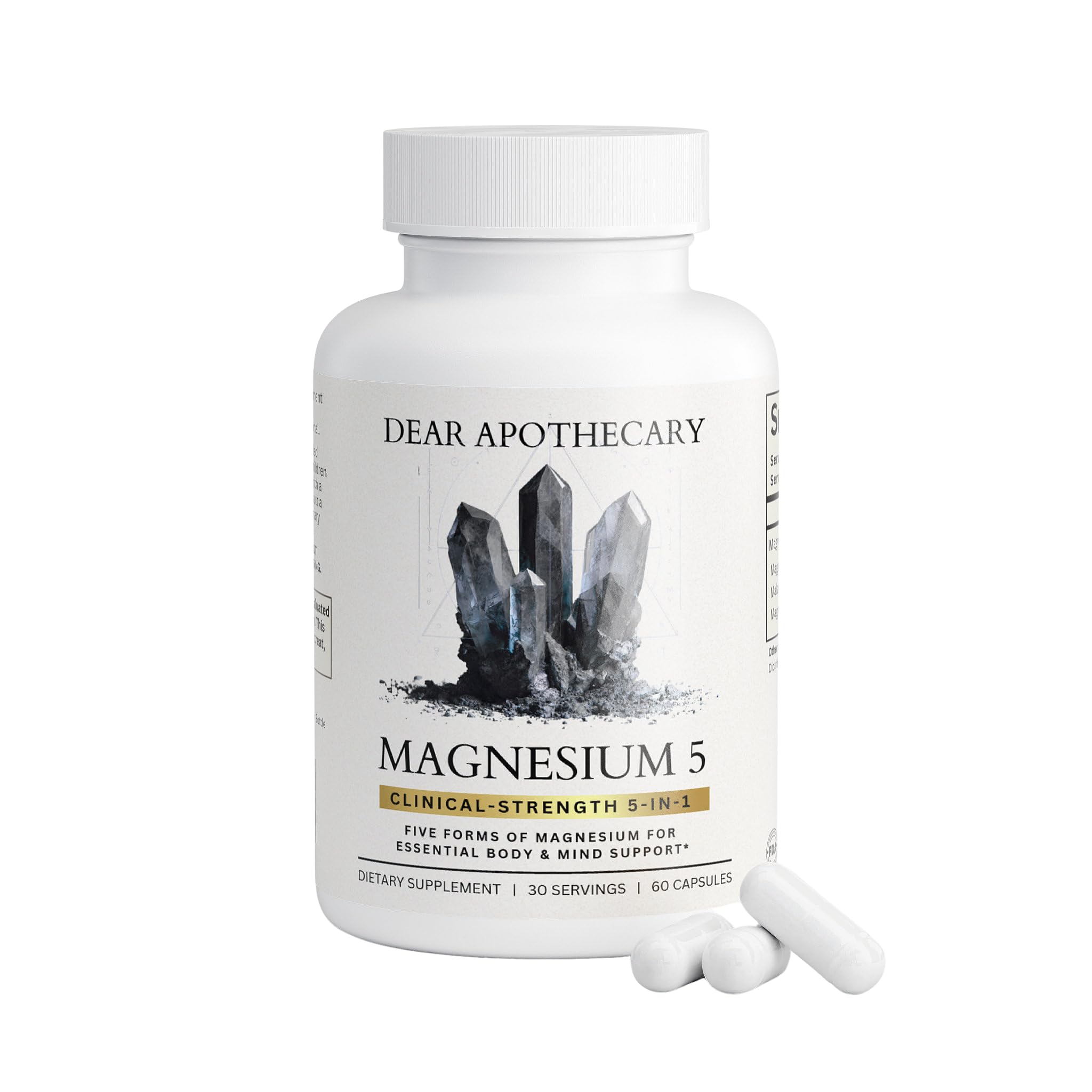 Magnesium Complex Supplement - 5 Forms Citrate Glycinate Malate Oxide Aquamin - Multi Magnesium Blend - High Absorption Chelated - Essential Mineral - Non-GMO Gluten-Free - 60 Capsules