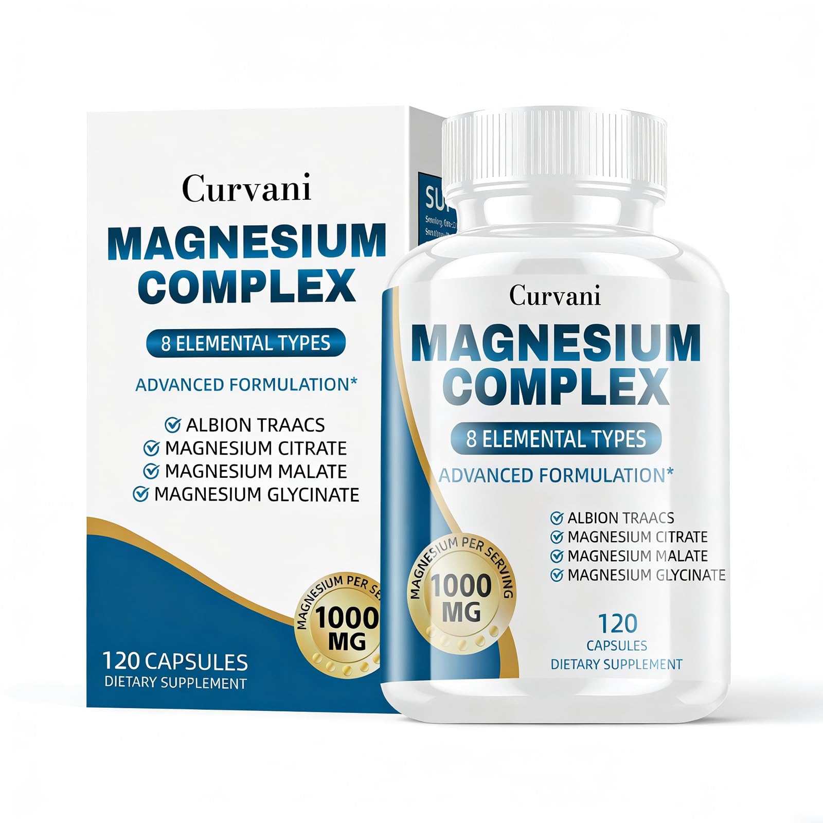 Magnesium Complex Supplement Provided by 1000mg of Eight Different Forms of Magnesium Easy Absorption for Bones Muscle Recovery Energy Vegan Non-GMO120 Capsules (1pcs)