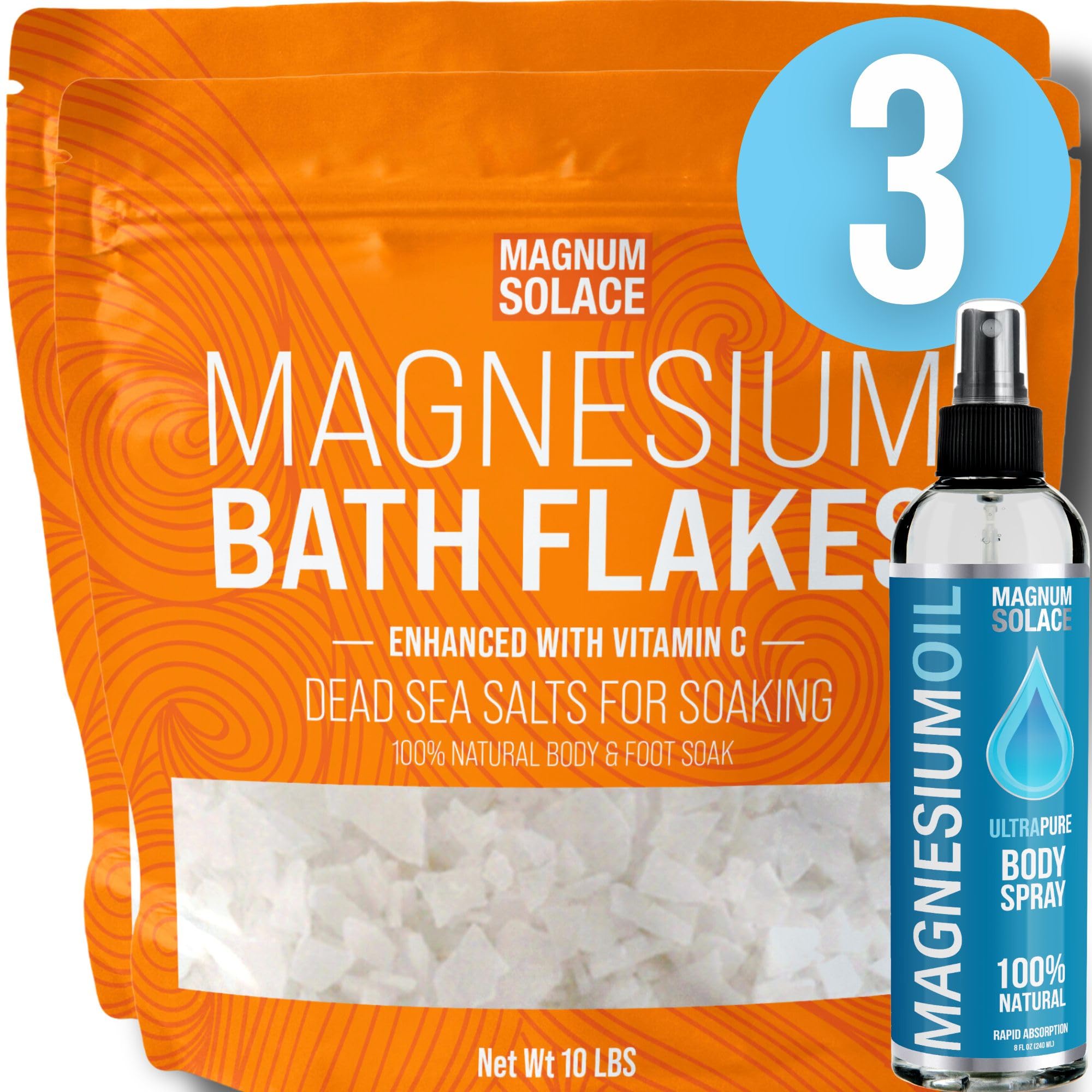 Magnesium Flakes with Vitamin C and Magnesium Spray: 3 Item Bundle