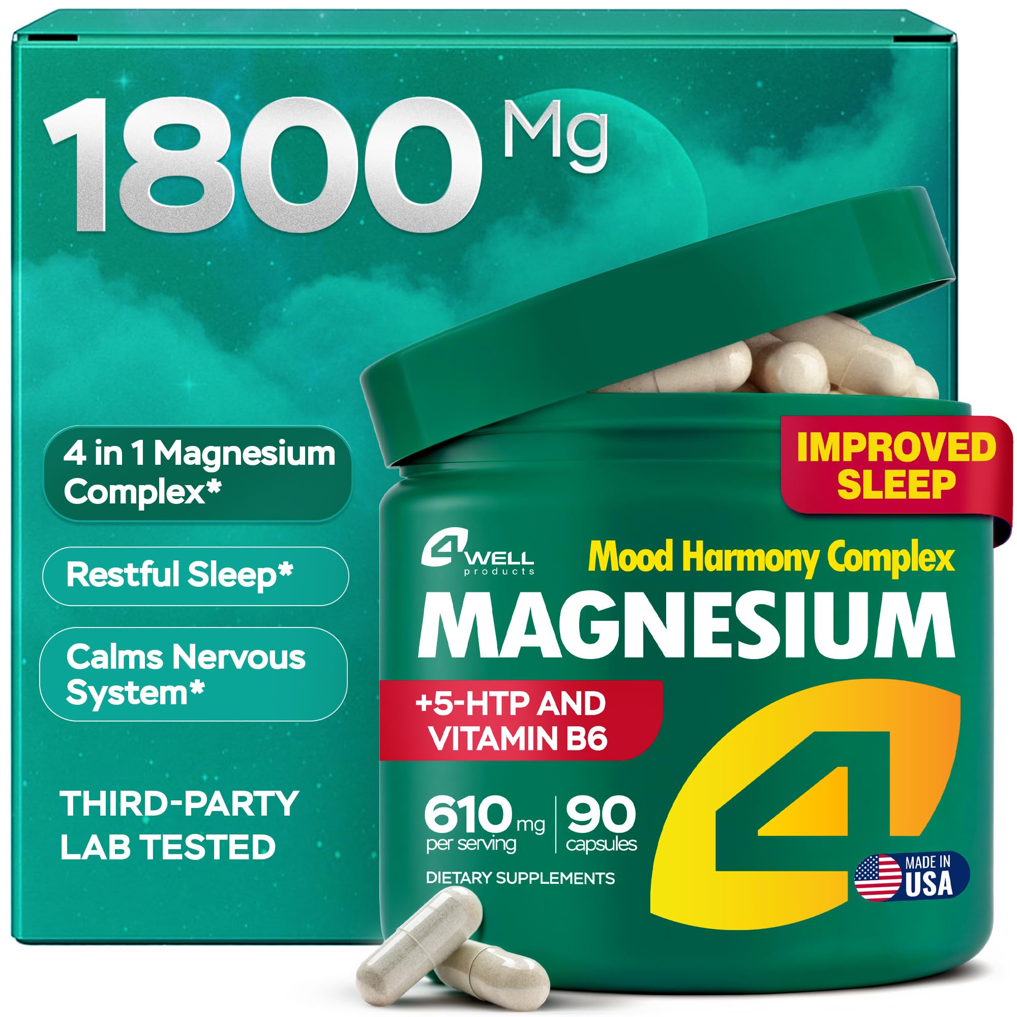 PREMIUM QUALITY ASSURANCE - VERIFIED TESTED - Manufactured in GMP-certified USA facilities and third-party tested for purity, potency, and ingredient identity. Each batch of this magnesium supplement follows strict quality control to ensure consistent performance and clean formulation. EASY-TO-TAKE VEGETARIAN CAPSULES - Convenient magnesium glycinate capsules designed for once-daily use with food and water. Each serving delivers a complete dose of magnesium vitamins in a clean, non-GMO formula free from common allergens. SUITABLE FOR WOMEN MEN - UNIVERSAL DAILY NUTRITION - Formulated as a balanced magnesium supplement for women and men, providing versatile nutritional support. A plant-based, magnesium glycinate organic option compatible with most wellness and dietary programs. MAGNESIUM FOR SLEEP RELAXATION SUPPORT - Features high-absorption magnesium glycinate and citrate, known for their gentle nature and evening suitability. A balanced magnesium for sleep blend often included in nighttime wellness routines for calm and relaxation. 3X BETTER ABSORPTION WITH VITAMIN B6 - Contains Vitamin B6 (P5P) to improve cellular magnesium utilization and nutrient uptake. This organic magnesium glycinate complex offers efficient absorption in convenient magnesium capsules for daily intake. DUAL-ACTION FORMULA FOR MIND BODY - Combines a premium magnesium complex supplement with 5-HTP for coordinated nutritional care of muscles and mind. Suitable for inclusion in balanced routines focused on relaxation, recovery, and general wellbeing. SYNERGISTIC INGREDIENTS FOR MAXIMUM EFFECTIVENESS - Magnesium glycinate and citrate supply bioavailable forms of magnesium, while 5-HTP and Vitamin B6 work together to maintain nervous system balance. Designed for individuals seeking a high-absorption magnesium glycinate supplement with complementary mood-supporting nutrients. TARGETED SUPPORT FOR MOOD, RECOVERY BALANCE - An advanced blend of Magnesium Citrate, Magnesium Glycinate, 5-HTP, and Vitamin B6 formulated for nutritional balance and everyday wellness. This magnesium supplement provides comprehensive support for active lifestyles and daily equilibrium routines.