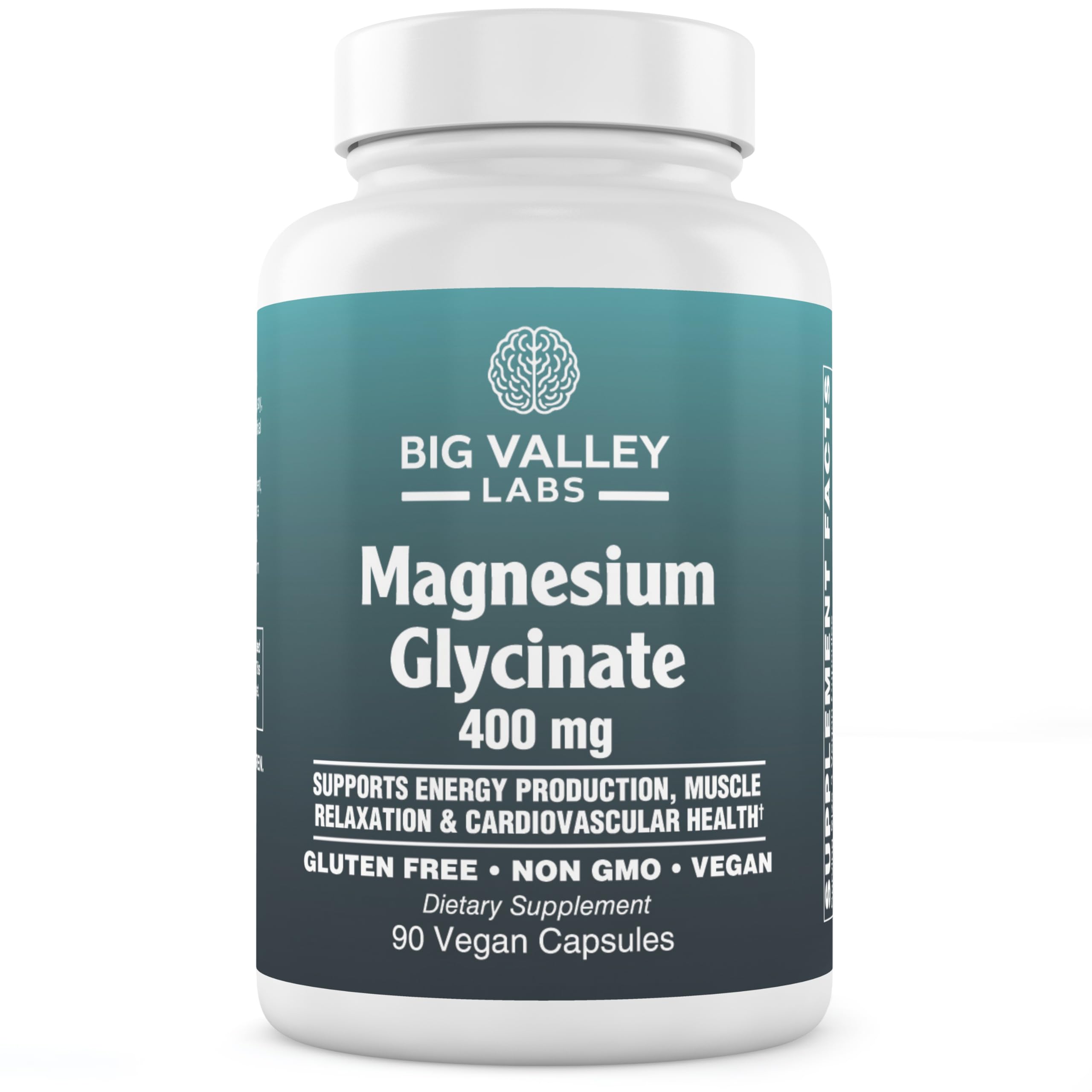 Magnesium Glycinate 400 mg High-Absorption Chelated Magnesium Supports Muscle Nerve & Energy Wellness Vegan Non-GMO Gluten-Free 90 Capsules Big Valley Labs