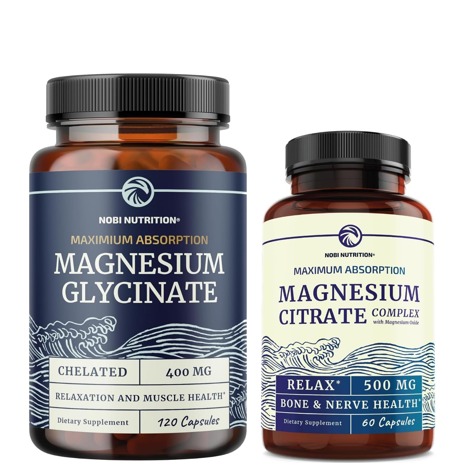 Magnesium Glycinate 400mg (120ct) & Magnesium Citrate 500 MG (60ct) | High Absorption Calm Relaxation Digestion & Muscle Support | Non-GMO Vitamin and Mineral Bundle