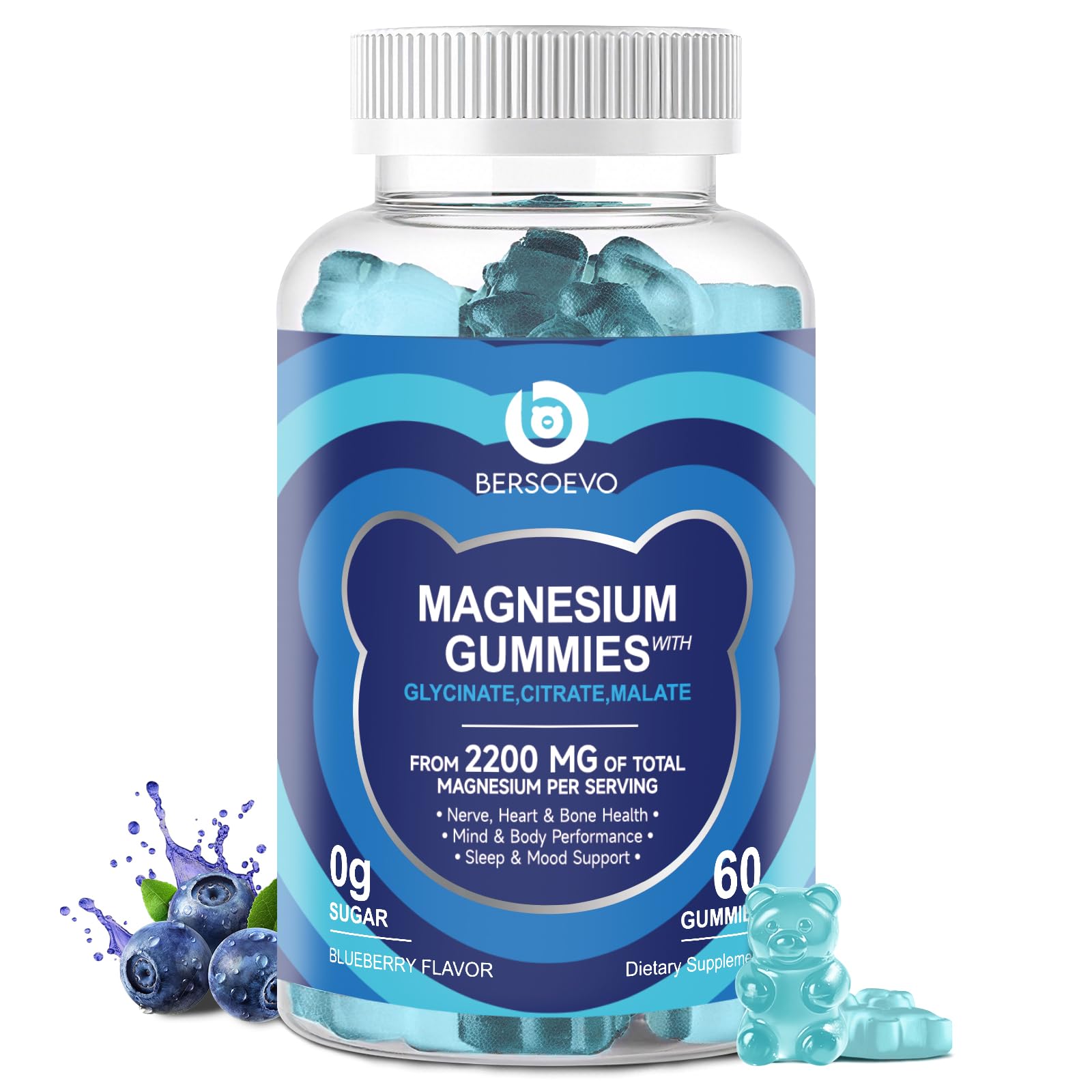 Quality guaranteed: These magnesium glycinate gummies are made in GMP-certified facilities. Every batch undergoes strict testing, and we use top-quality ingredients—so you can feel confident choosing them for your magnesium intake. Perfect Absorption: We use a highly bioavailable blend formula that allows your body to absorb magnesium more perfectly, maximizing the effectiveness and providing you with a relaxed and pleasant healthy life. Supports Healthy Sleep:These gummies are made with a high-powered magnesium blend—they help ease those nighttime muscle cramps, relax your nerves, and let you stay in deep sleep longer. They'll seriously up your sleep quality, big time. Sugar-Free Blueberry Gummies: These delicious magnesium gummies are sugar and gluten-free, and a top pick for veggie lovers. They're easy to chew, perfect for both adults and kids. Take two a day—one bottle gives a 30-day supply. High-Efficiency Magnesium Gummies: Blended with magnesium glycinate, citrate and malate, 200mg per serving. Supports muscle and bone health, daily sleep and nerve relaxation, meeting your everyday health needs.