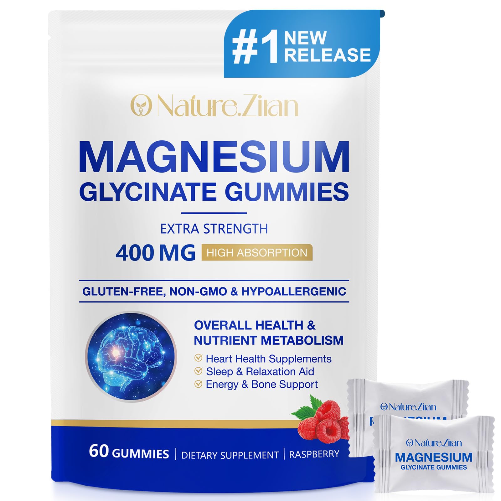 Convenient Delicious, One Daily Simply take one gummy per day with a meal. Enjoy a smooth, chewy texture that makes daily nutrition both easy and enjoyable. Each bottle contains 60 gummies, providing a two-month supply. Natural Taste, Clean Formula Made with natural raspberry flavor, no artificial sweeteners, gluten-free, non-GMO, and low in sugar with only 12 calories per gummy—perfect for health-conscious lifestyles. Comprehensive Health Support Magnesium Glycinate contributes to maintaining bone strength, cardiovascular function, and healthy nutrient metabolism, suitable for adults focused on overall wellness. Promotes Sleep Relaxation Magnesium aids in eg tension and promoting relaxation, making it an ideal choice to take before bedtime to support better sleep quality and overall calm. Highly Absorbable Magnesium Supplement Each gummy delivers 400mg of Magnesium Glycinate, a highly bioavailable form of magnesium that is easily absorbed by the body, helping to support normal muscle, nerve function, and energy metabolism.