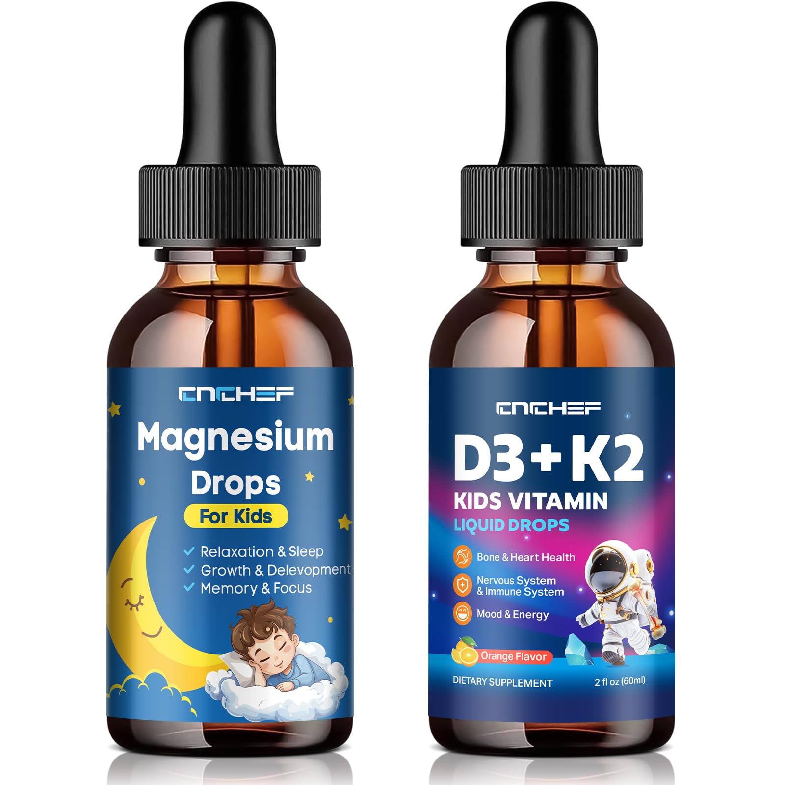 LIQUID FORMULA WITH 98 ABSORPTION RATE: Liquid Vitamin D3 K2 absorbs nutrients faster than capsules. Clinically proven to have an absorption rate of up to 98 . Convenient to take, natural taste, avoids the difficulty of swallowing tablets or capsules. SUPPORT BONE, HEART IMMUNE HEALTH WITH K2 D3 SYNERGY: Our K2D3 Drops combine Vitamin D3 (400 IU) and high-potency MK-7 K2 (15 µg) with magnesium glycinate for triple-action support: strong bones, cardiovascular health, and immune defense. D3 boosts calcium absorption, while K2 directs calcium to your bones, minimizing arterial calcification. Ideal for active children aged 4 . Enhances Focus Emotional Balance: Support your child's bright mind and positive mood. Key ingredients like Magnesium, L-Theanine, and Omega-3 help sharpen concentration and mental clarity. Added Vitamin B6 and D3 aid cognitive function and mood regulation, promoting a calm, focused, and happy mindset daily. Fast-Absorbing Gentle on the Stomach: Skip slow-digesting pills or gummies! Our liquid magnesium drops use highly bioavailable Magnesium Glycinate for superior absorption without stomach upset. Free from artificial additives, it's gentle for sensitive young tummies while delivering optimal nutrients for focus, relaxation, and muscle function. Supports Relaxation Restful Sleep: Promote calmness and ease bedtime struggles with our gentle formula. Magnesium Glycinate, L-Theanine, and Omega-3 work together to relax muscles, balance mood, and support deeper sleep. Enriched with Vitamin D3 and Zinc for immune health, helping kids wake up refreshed and energized.