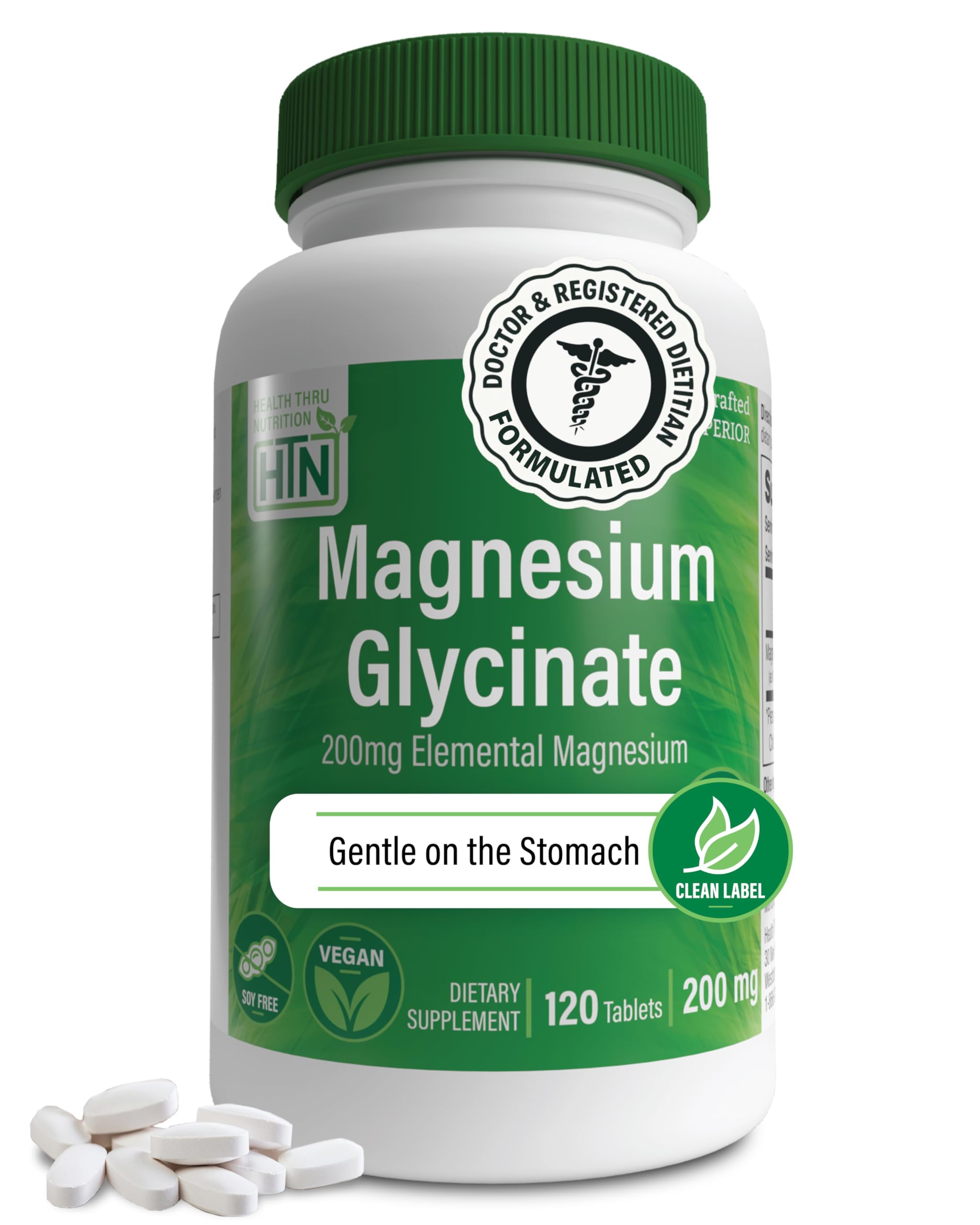 Magnesium Glycinate - Muscle Nerves Relaxation & Sleep Supplement | 200mg Elemental Magnesium Fully Reacted Chelated | Gentle on The Stomach | Non-GMO 120 Tablets | by Health Thru Nutrition
