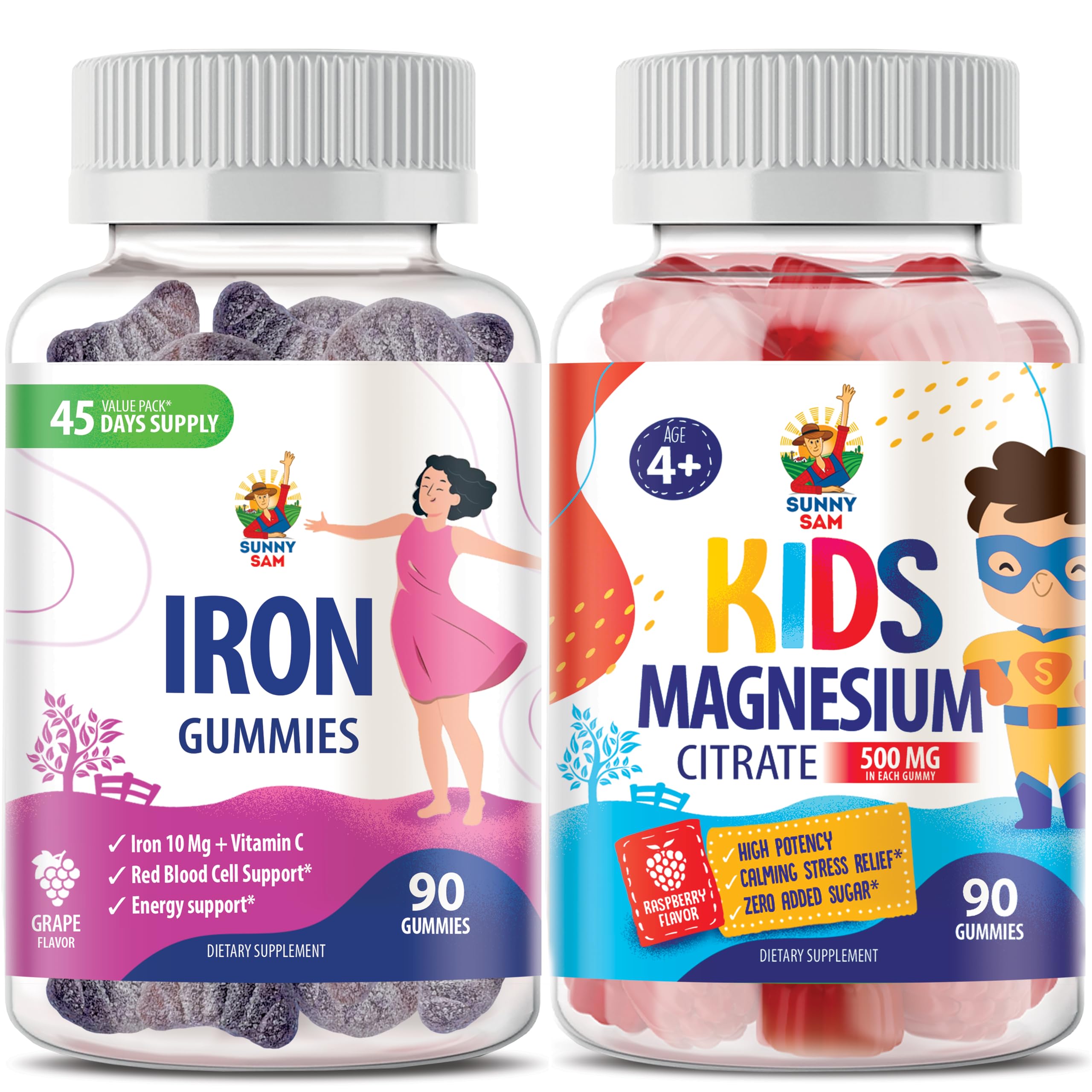 Magnesium Gummies for Kids 500mg & Iron Gummies for Adults - Iron Vitamins with Vitamin C